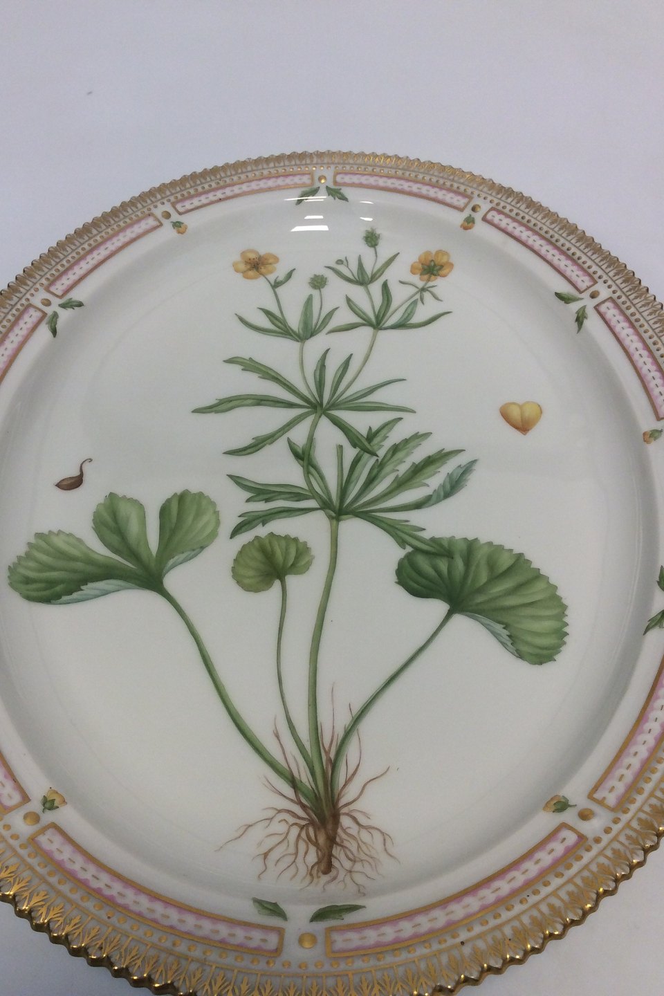 Royal Copenhagen Flora Danica Stor Servingsfad No 3520. Latinsk navn: Ranumculus caccubiens L. Måler 46,5 cm x 35 cm