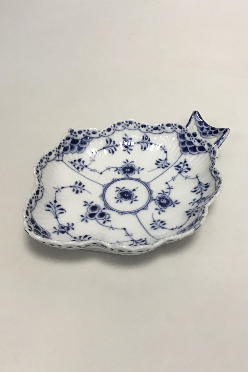 Royal Copenhagen Blue Fluted Half Lace Small Leaf-shaped Cake dish No 550. Measures 18.5 cm / 7 9/32 in. Chip on edge