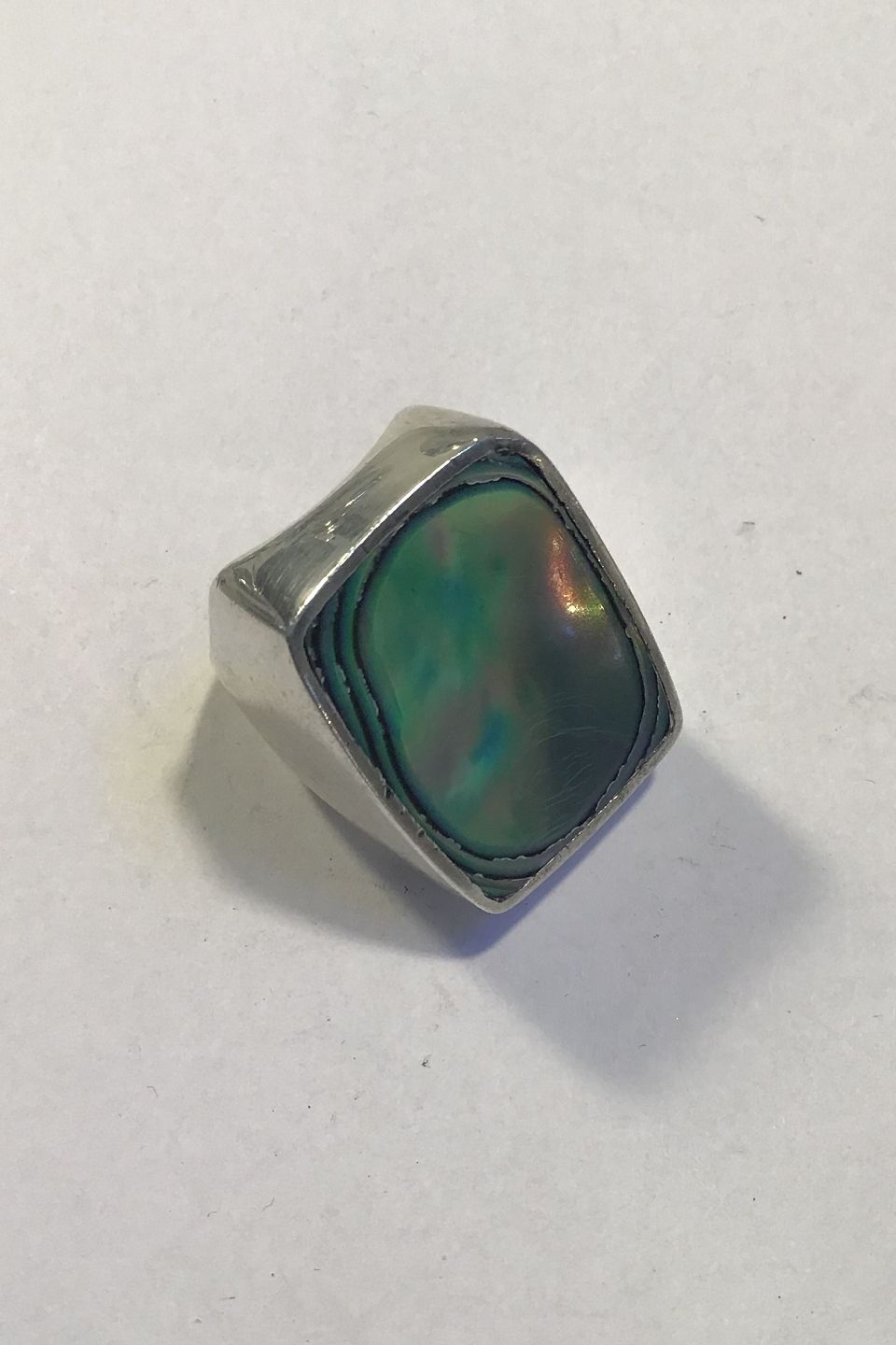 Palle Bisgaard Sterling Sølv Ring No 8 Abelone Perlemor Str 54 Måler 2.8 cm x 2.1 cm Vægt 23.5 gr