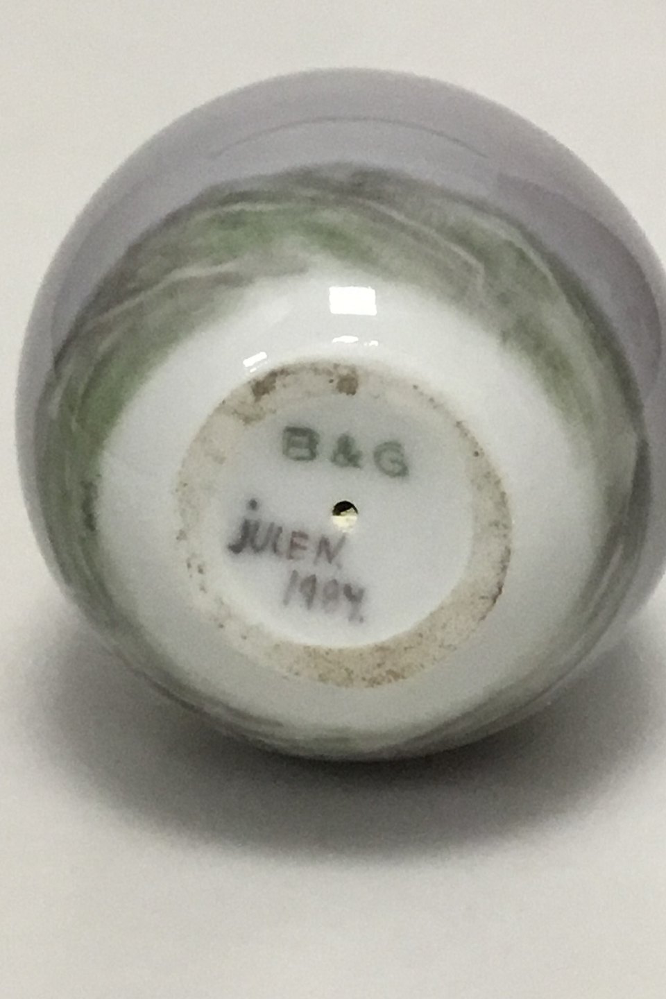 Bing & Grøndahl Hjemmedekoreret æg, Dateret julen 1984. Måler 6 cm