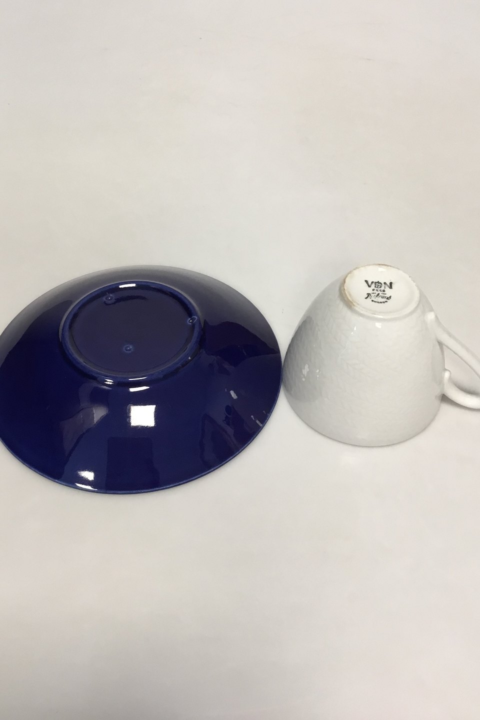 Rorstrand Blå Eld / Blue Fire Coffee Cup and Saucer. Measuremants - Cup: 9 cm / 3.55 in. Saucer: 15.5 cm / 6.11 in.