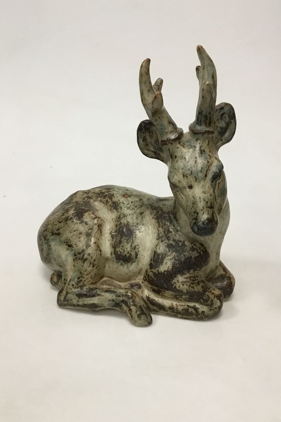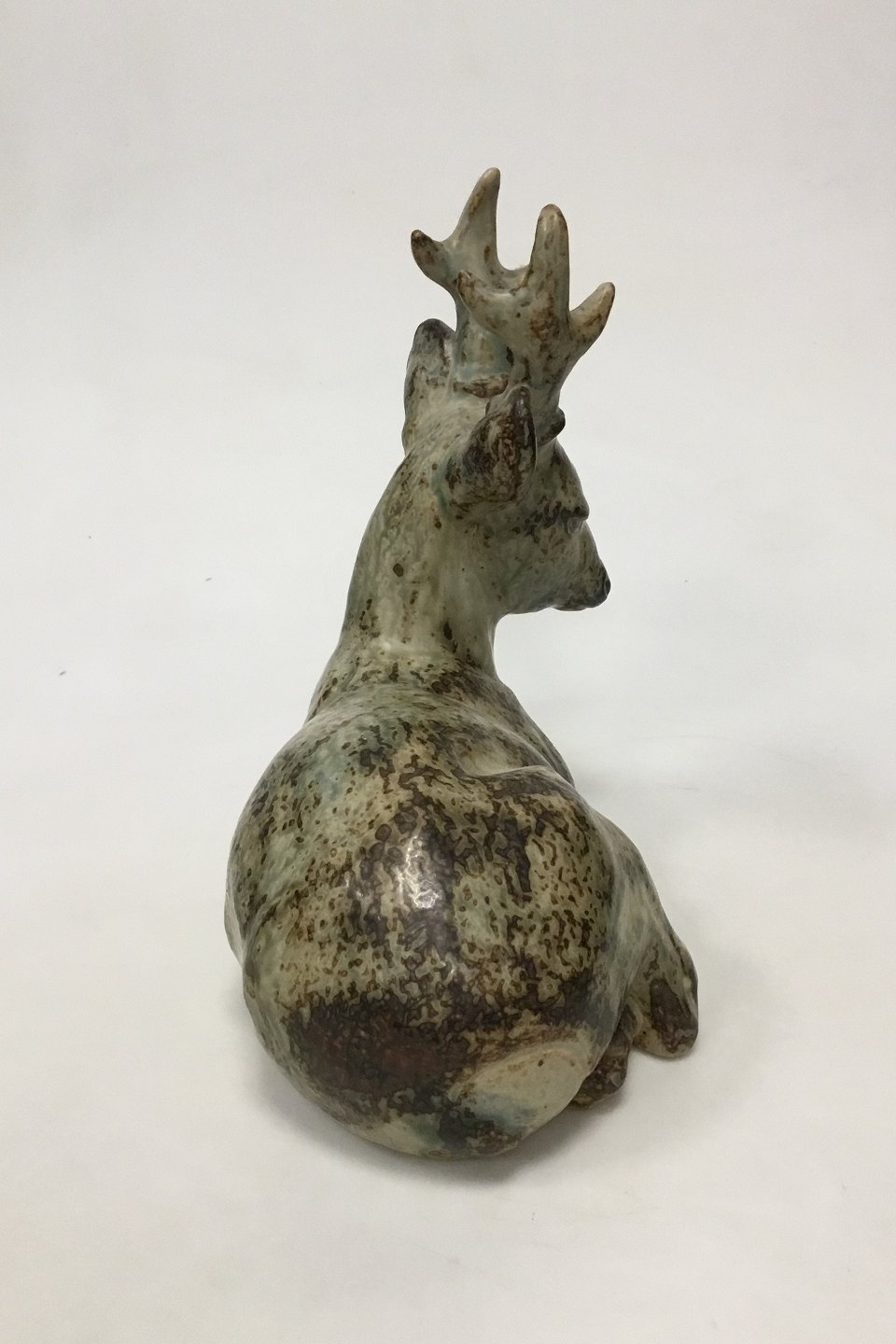 Royal Copenhagen Stentøjsfigur Liggende Hjort No 20507. Designet af Knud Kyhn. Måler 25 cm (9 27/32 in.)