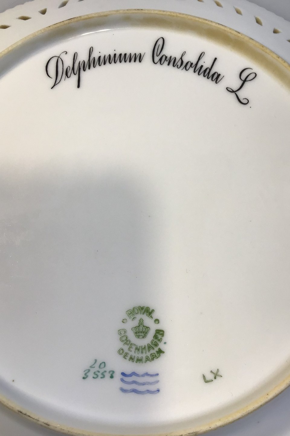 Royal Copenhagen Flora Danica Dinner Plate No 3553 Pierced border Latin Name Delphinium Consolida L(Larkspur) Measures 25.5 cm (10 in)
