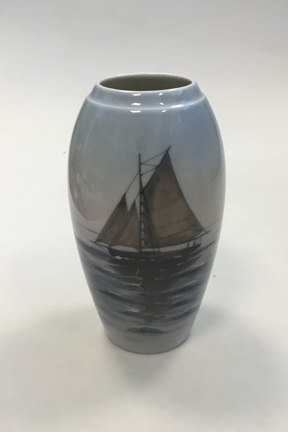 Bing & Grøndahl Art Nouveau Vase med sejlskib No 8352. Måler 18 cm(7 3/32 in.)