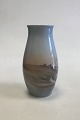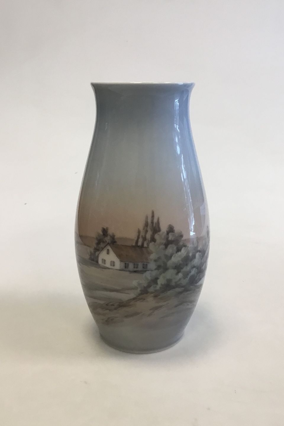 Bing og Grondahl Art Nouveau Vase No. 602-5249. Landscape motif with farmhouse. Measures 21.5 cm / 8.46 in.