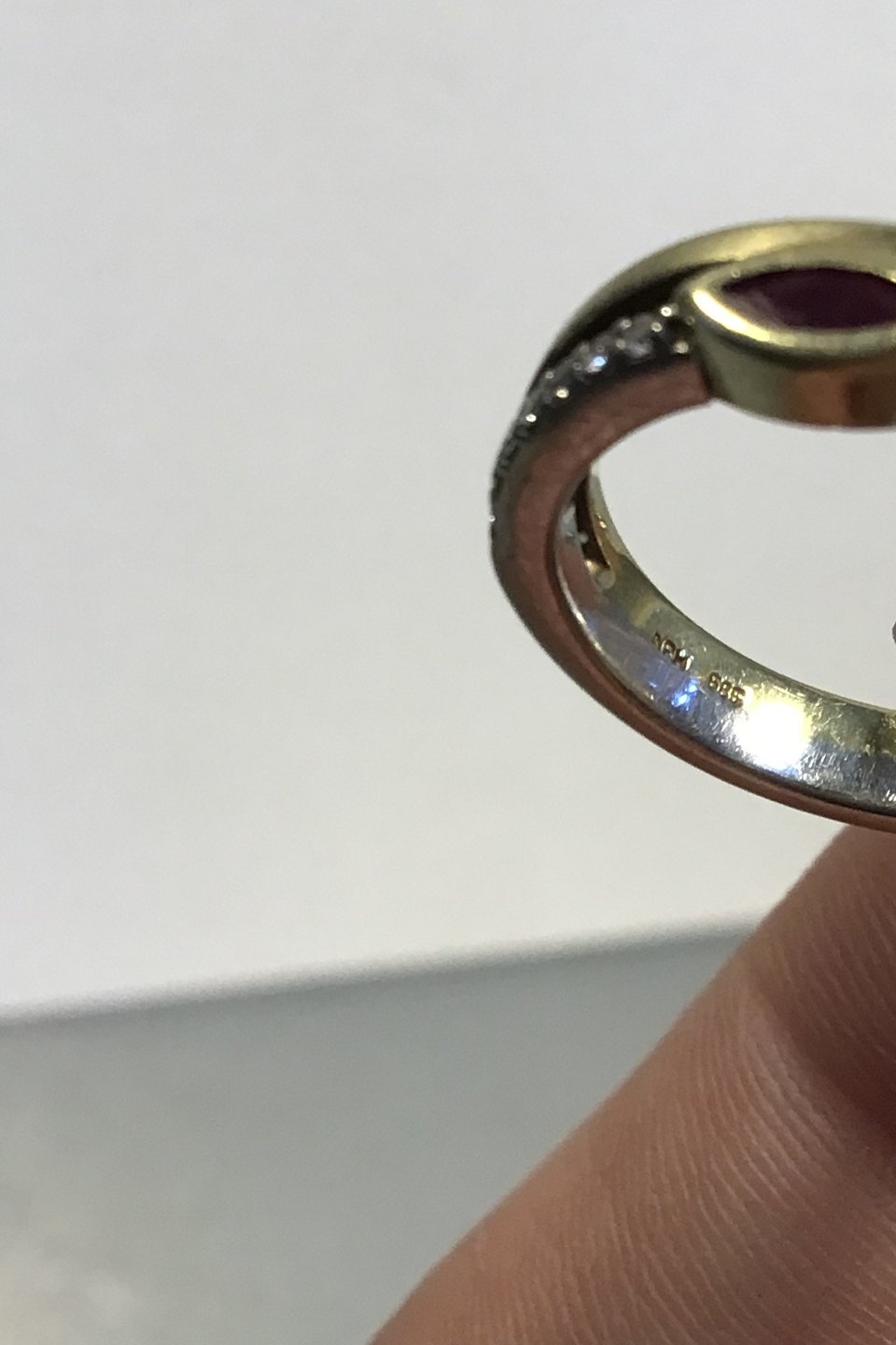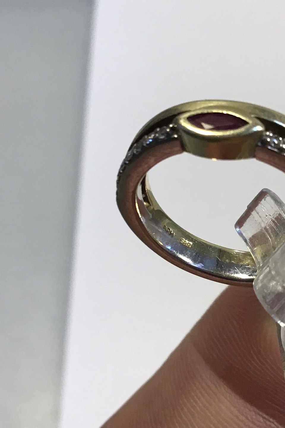 Niels Ruddy Hansen 14K Gold ring with Ruby and Diamond (0.11 ct) Ring Size 49(US 4 3/4) Weight 4.4 gr/0.16 oz