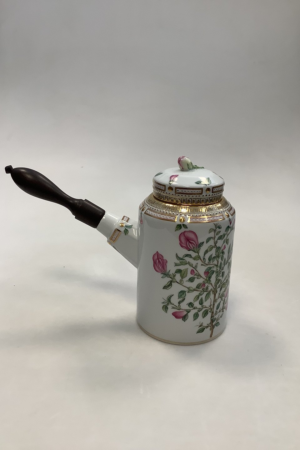 Royal Copenhagen Flora Danica Kaffekande No 128 (3620) Træhåndtag Latinsk Navn: Onosis spinosa Müll 1 sort Holder 6 kopper Måler H 17.5 cm