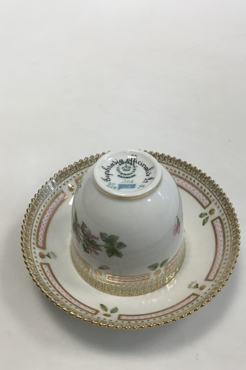 Royal Copenhagen Flora Danica Kaffekop og Underkop No 20/3597. Latinsk Navn: Euphrasia officinalis L. Måler Kop: 7 cm x 7,5 cm dia. Underkop: 13,8 cm