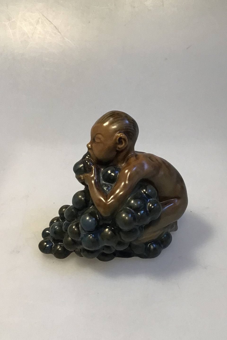 Bing & Grøndahl Figurine by Kai Nielsen "Little Bacchus with Grapes" No 4021 from The Grape Harvest Series. Designed in approx. 1915. Measures 9.5 cm / 3 47/64 in.