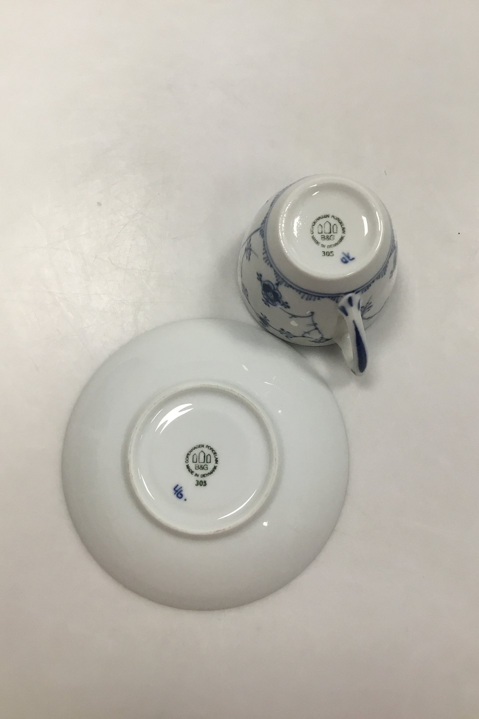Bing & Grøndahl Blåmalet Musselmalet Kaffekop og Underkop No 305/102. Kop måler 6,3 x 7,8 cm (2 31/64 x 3 5/64 in). Underkop måler 14 cm (5 33/64 in).