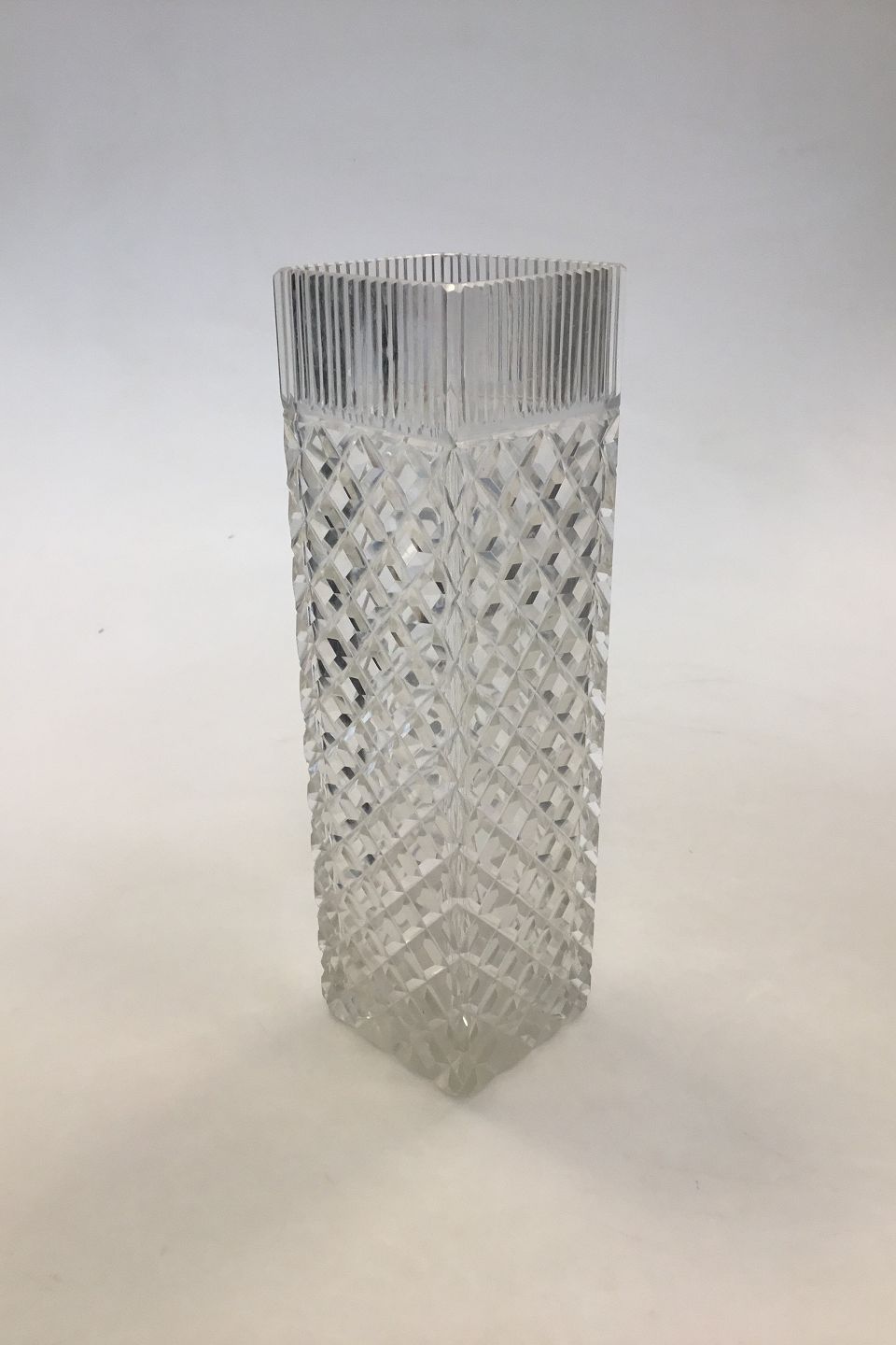 Glass Vase with Facet Grindings. Measures 7 x7 x 25 cm (2 3/4 x 2 3/4 x 9 27/32 in).