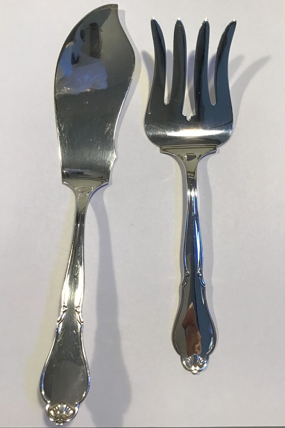 Carl M Cohr Silver Ambrosius Fish Serving Set Measures Server 27 cm (10 5/8 in) Fork 22 cm(8 21/32 in)