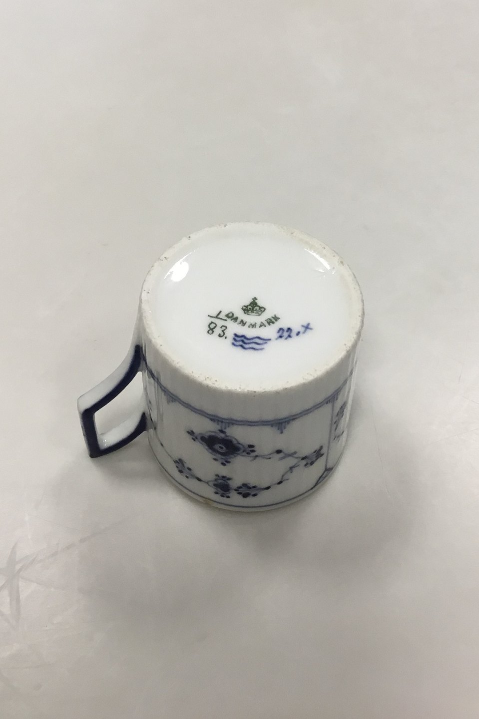 Royal Copenhagen Blue Fluted Plain Chocolate Cup No 83. Measures 6 cm / 2 23/64 in. From 1894-1900. Has a few chips on the rin