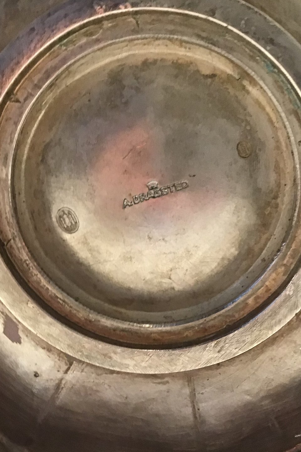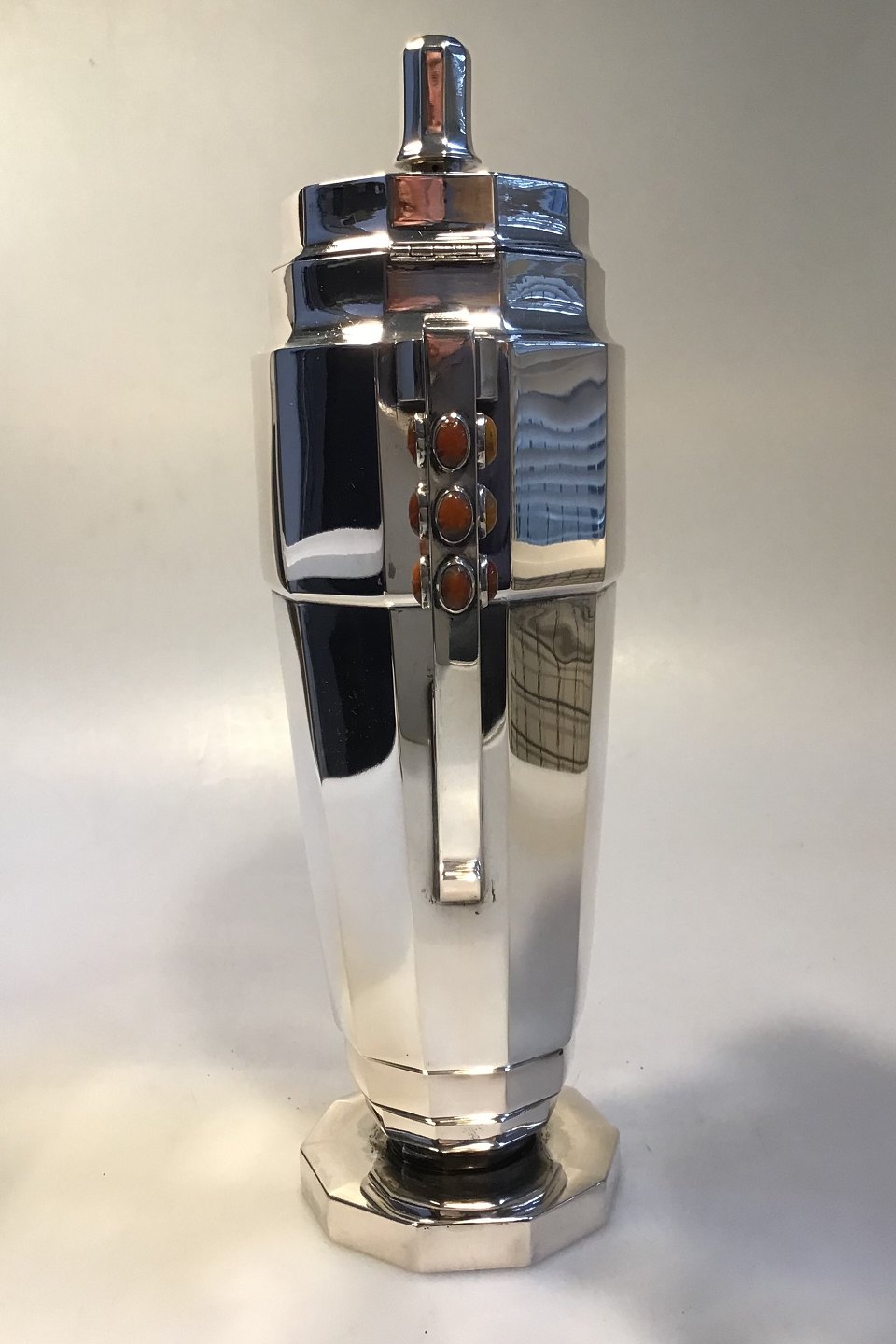A Dragsted Art Deco sølv Cocktailkande (1911) Høj ligeknækket korpus indvendigt lueforgyldt. Hank udsmykket med 12 ovale ravperler. Måler H 33 cm. (13 in) Vægt 732 gr /25.80 oz