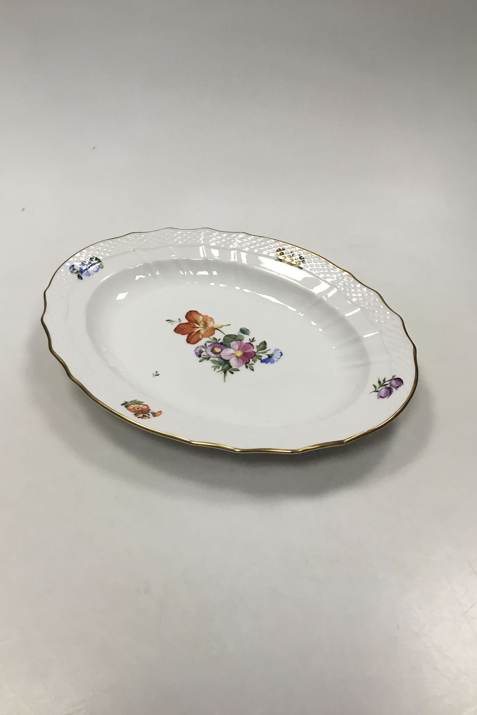 Royal Copenhagen Saksisk Blomst Let Ovalt fad No. 1555. Måler 31 cm (12 13/64 in.)