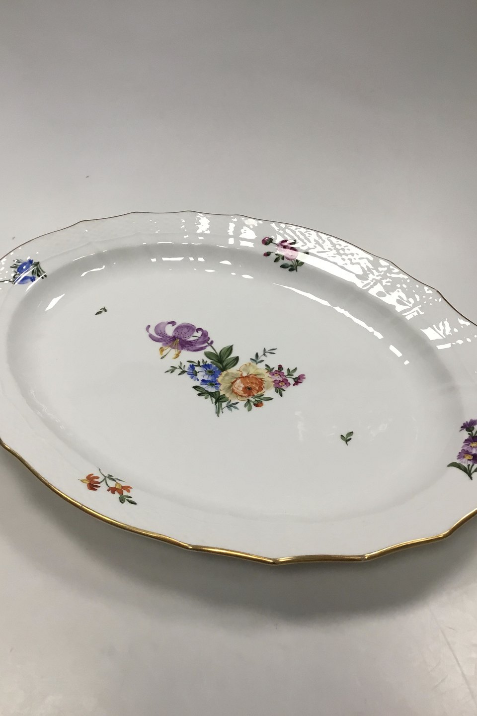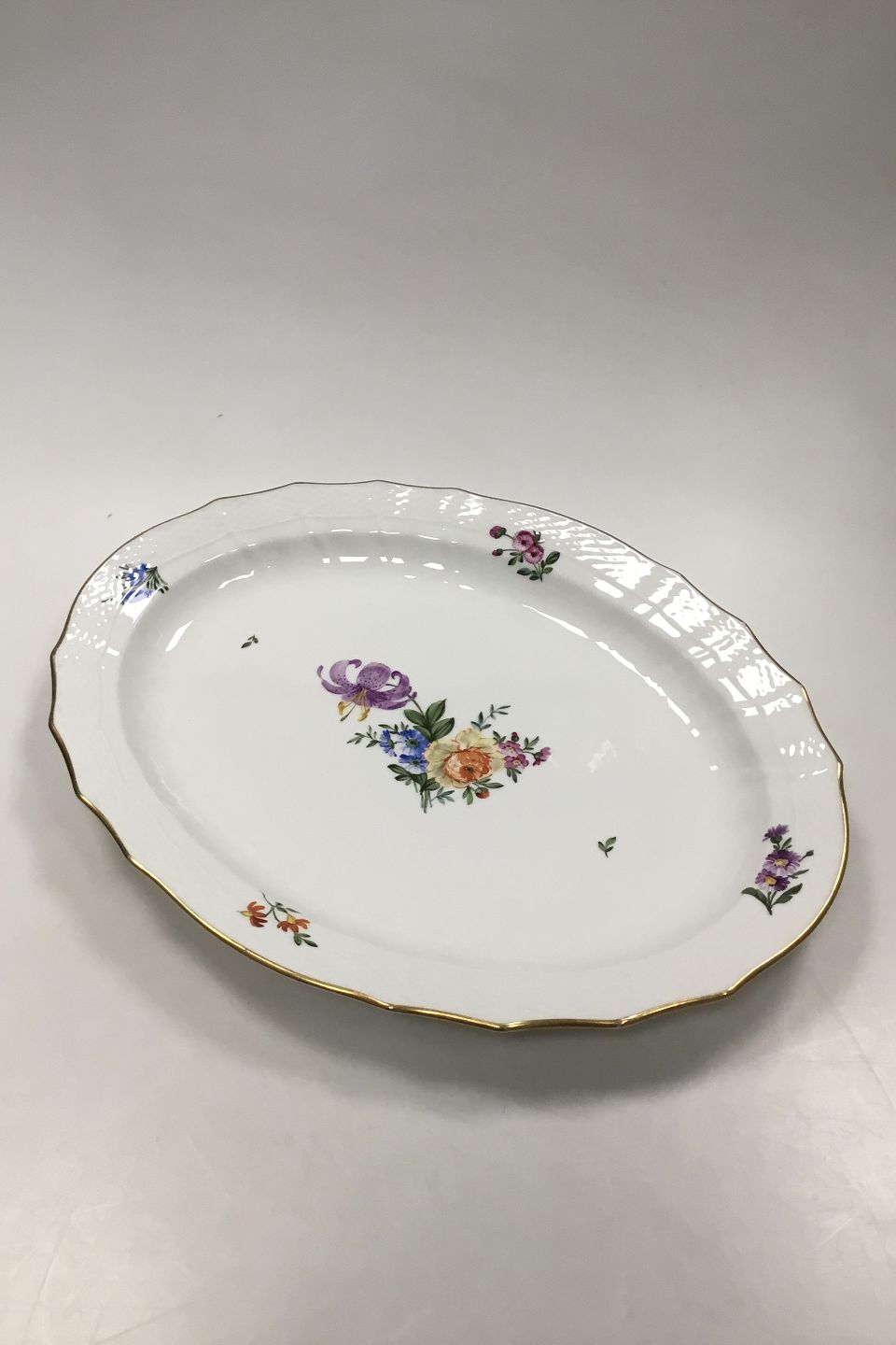 Royal Copenhagen Saksisk Blomst Let, Stort ovalt Fad No. 1558. Måler 43,5 cm x 34,5 cm / 17,12 in. x 13,58 in.
