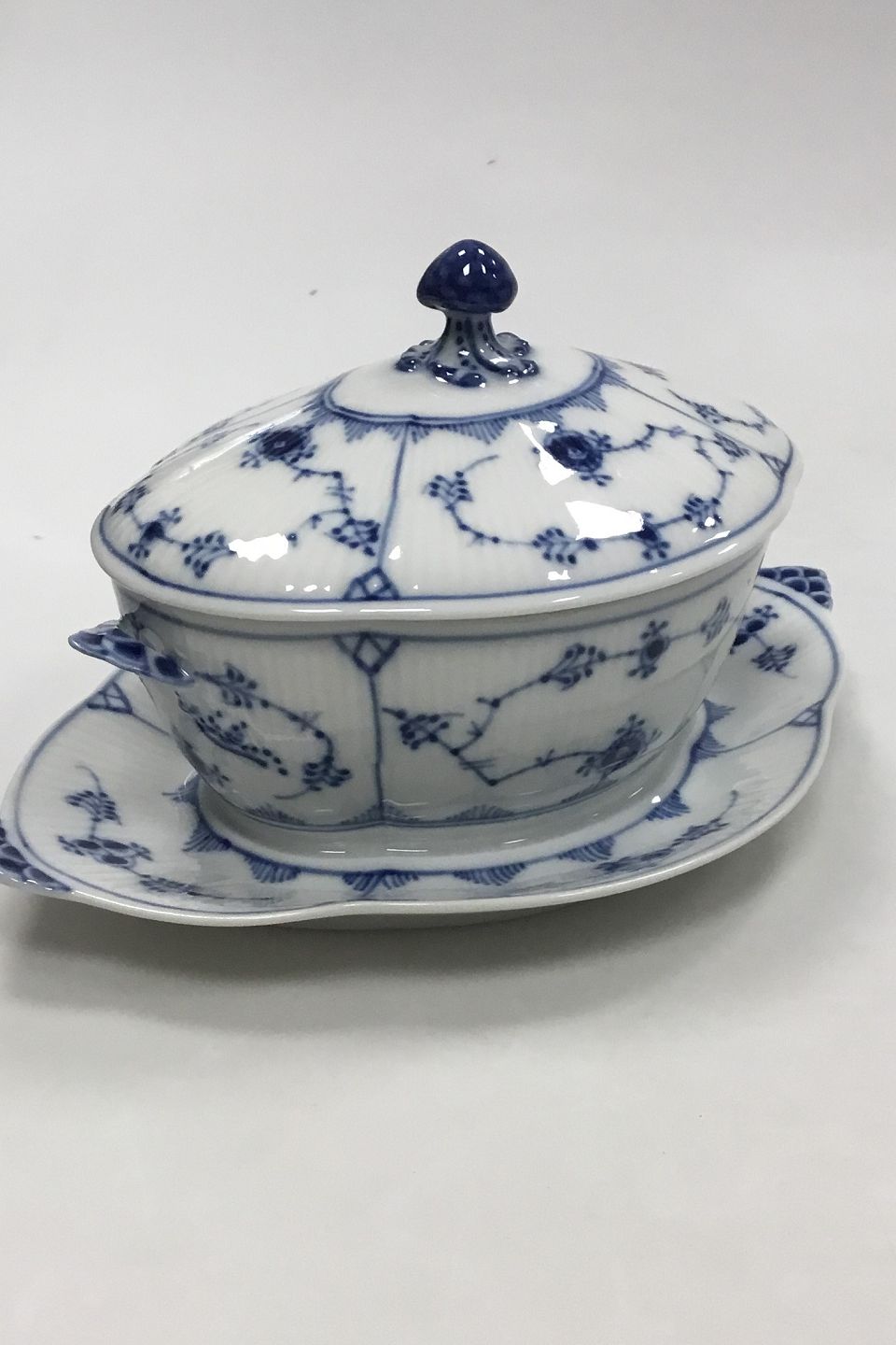 Royal Copenhagen Blue Fluted Sauce Boat with Lid No. 207. 1st Quality. Measures 23.5 cm / 9 1/4 in.