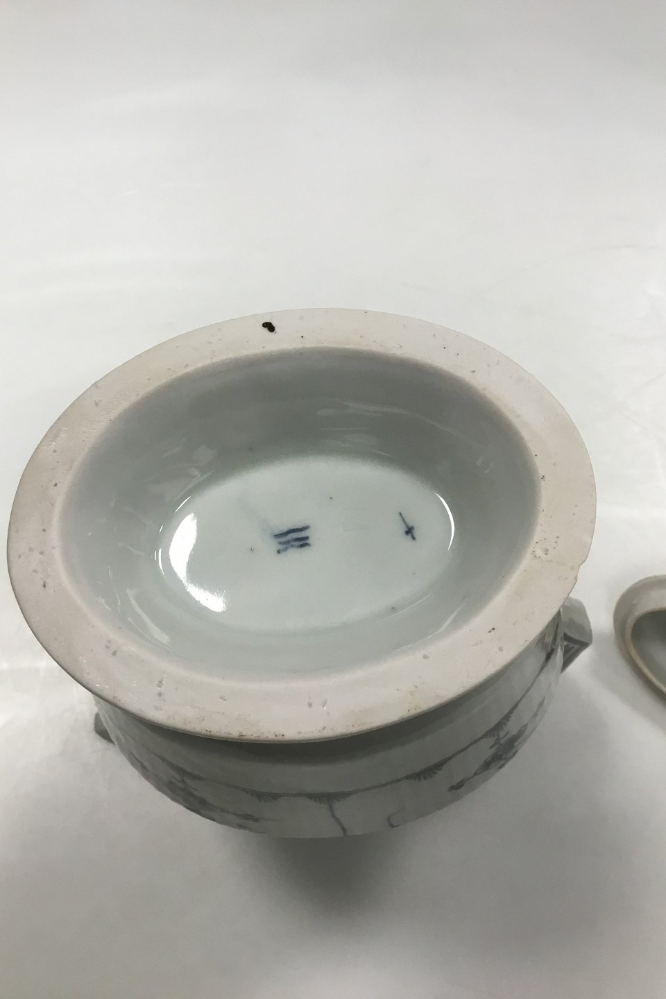 Royal Copenhagen Antik Musselmalet Kaffekande No 2029. Måler 25,5 cm (10 3/64 in.) 1. sortering. Med afslag på fod.