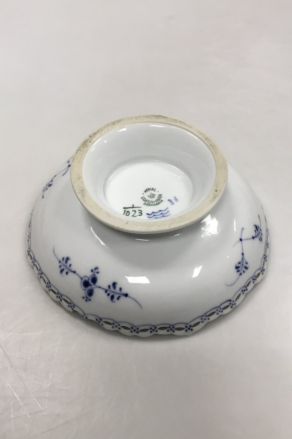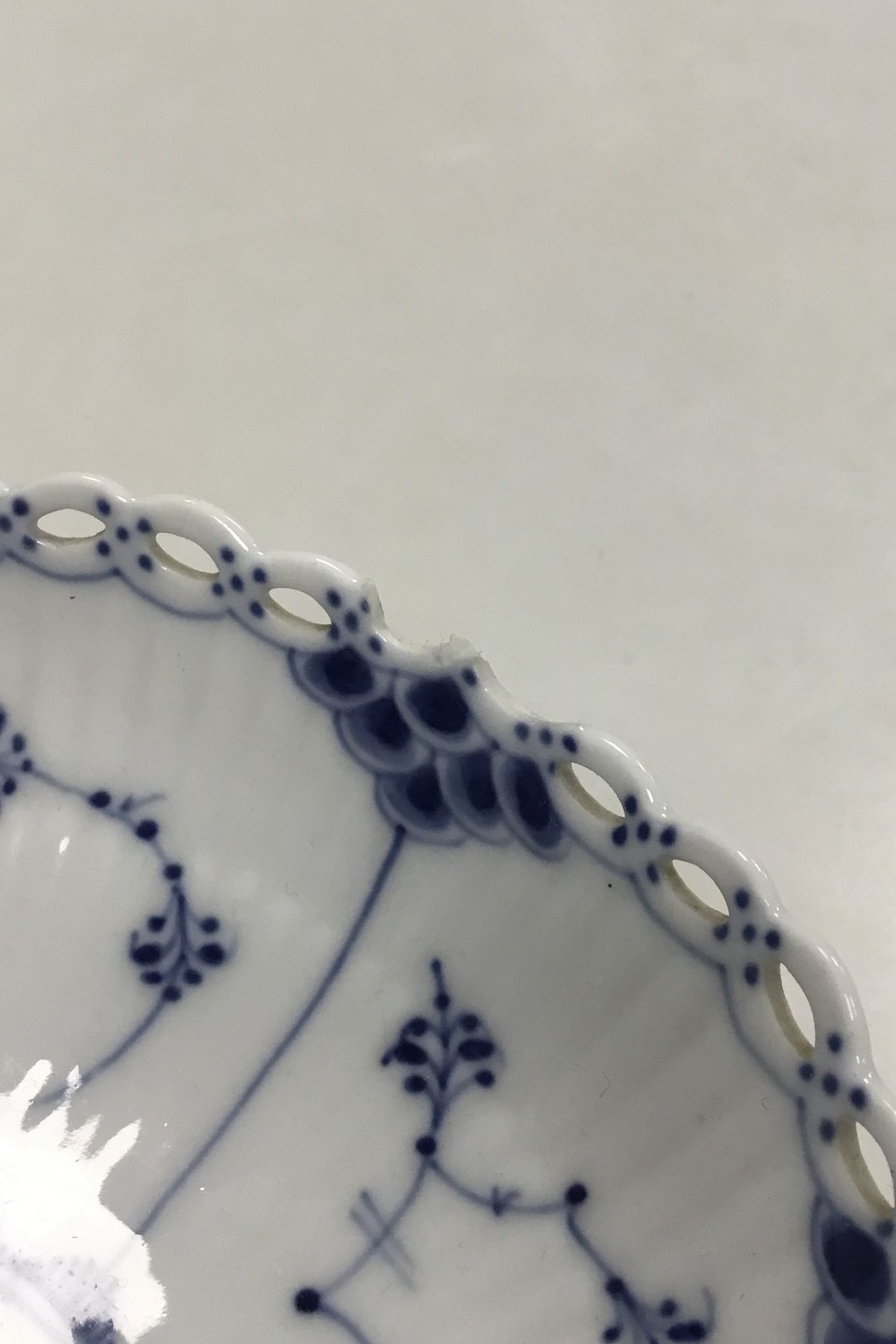 Royal Copenhagen Blue fluted Full Lace Bowl on Foot No. 1023. Measures 17.5 cm / 6 57/64 in. 1st Quality. With two chips on the rim.