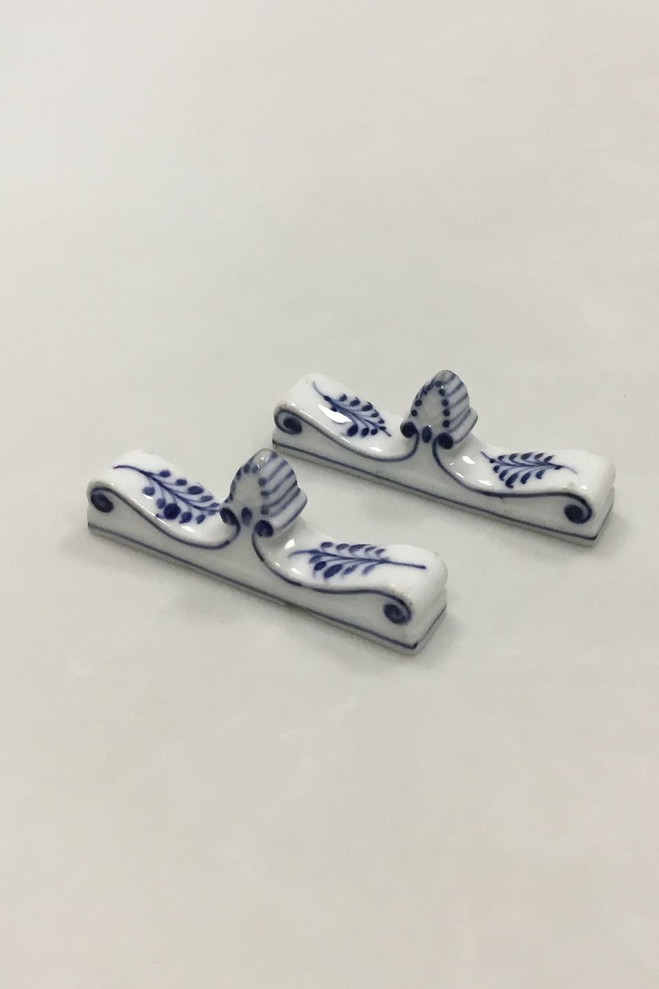 Royal Copenhagen Blue Fluted Plain A pair of Knife Rests No 134. Measures 8 cm x 3 cm / 3 5/32 in. x 1 3/16 in. Both with chips