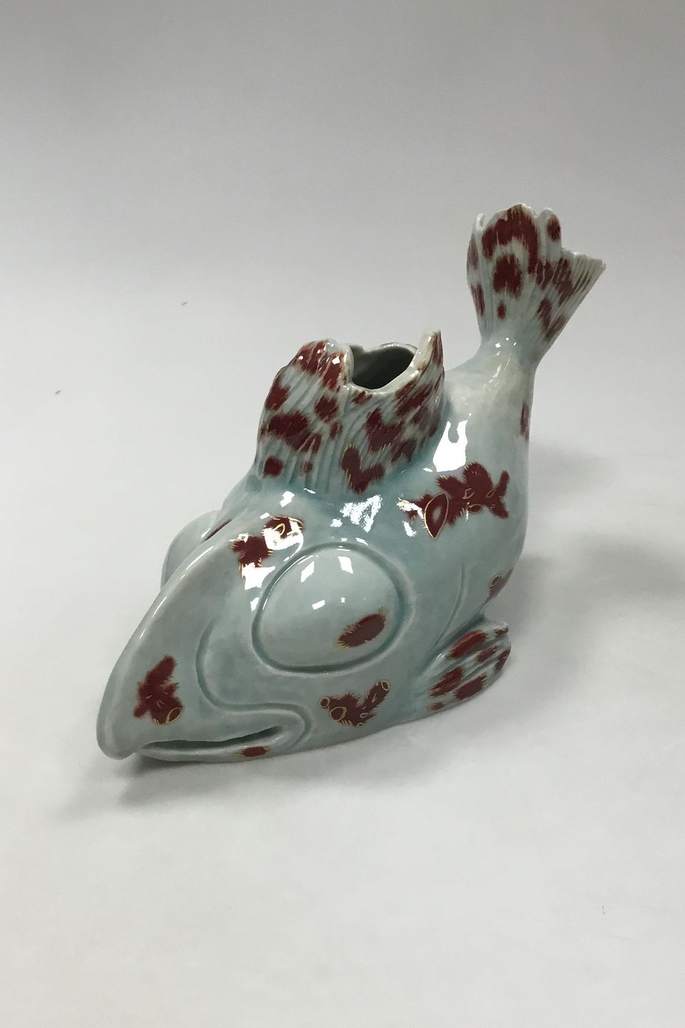 Royal Copenhagen Vase udformet som en fisk (Knurhane?). Designet af Thorkild Olsen. Måle 30 cm ( 11 13/16 in. )