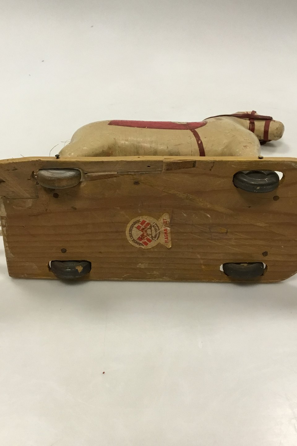 Gammel Legetøjshest på hjul. Mærke fra Dansk Legetøjsfabrik A/S København 'Flagmærket'. Måler 28 cm ( 11 in. )