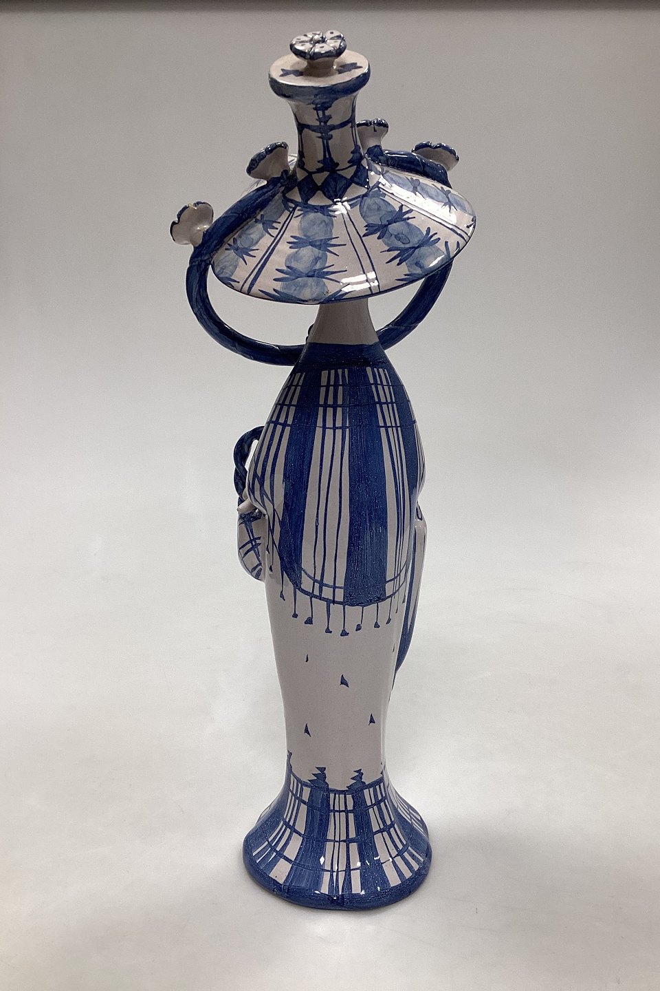 Bjorn Wiinblad figurine from The Four Seasons, Fall No M22. Signed in 1981. Measures 33 cm / 12.99 in. Repair of flower in the hat.