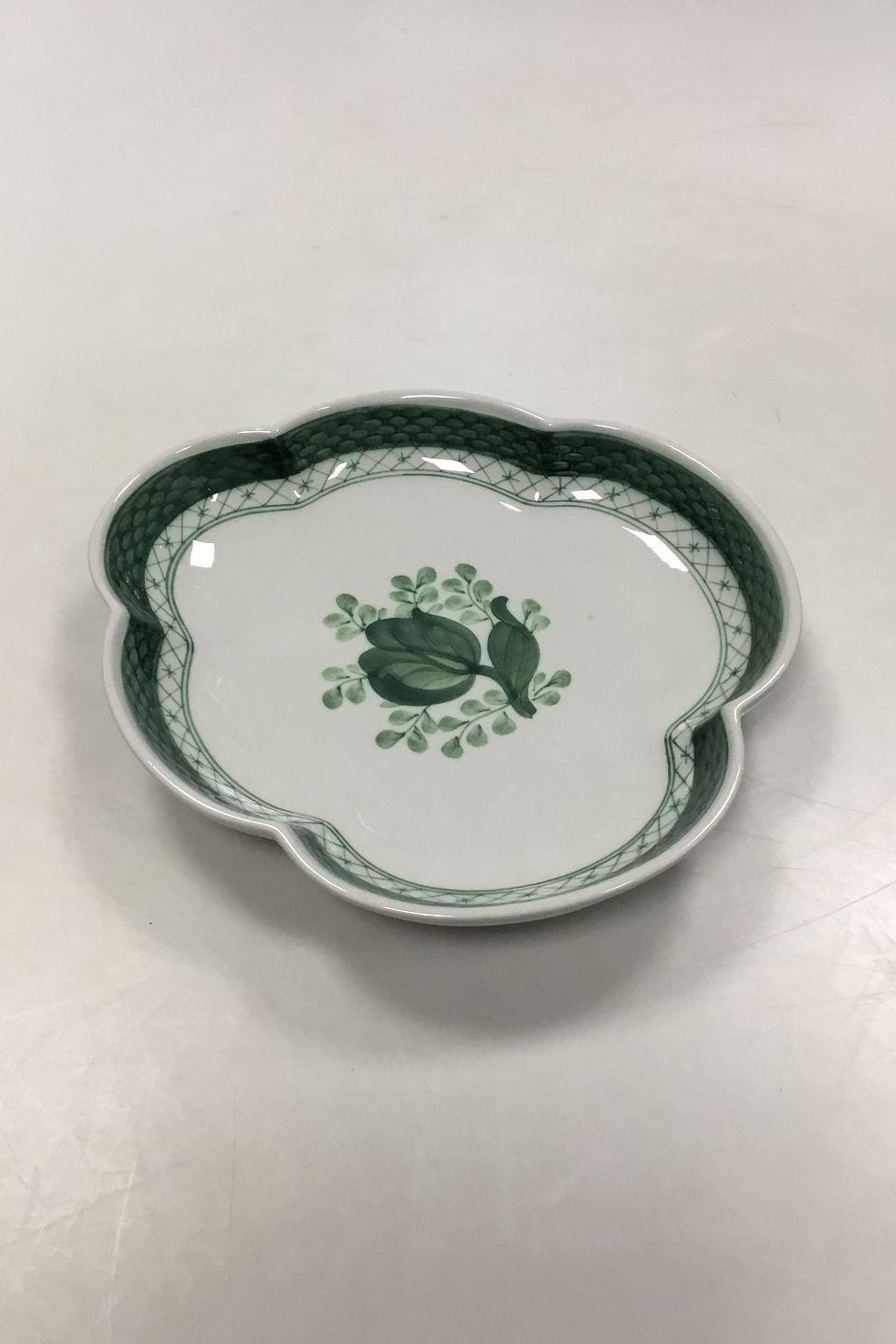 Royal Copenhagen Green Tranquebar Leaf Shaped Dish No 924. Measures 20.5 cm / 8.07 in.