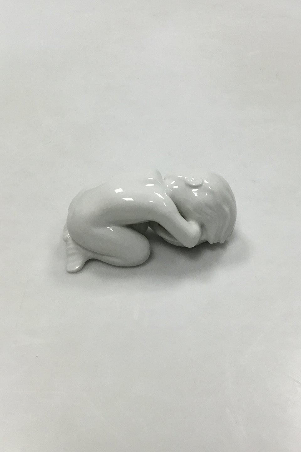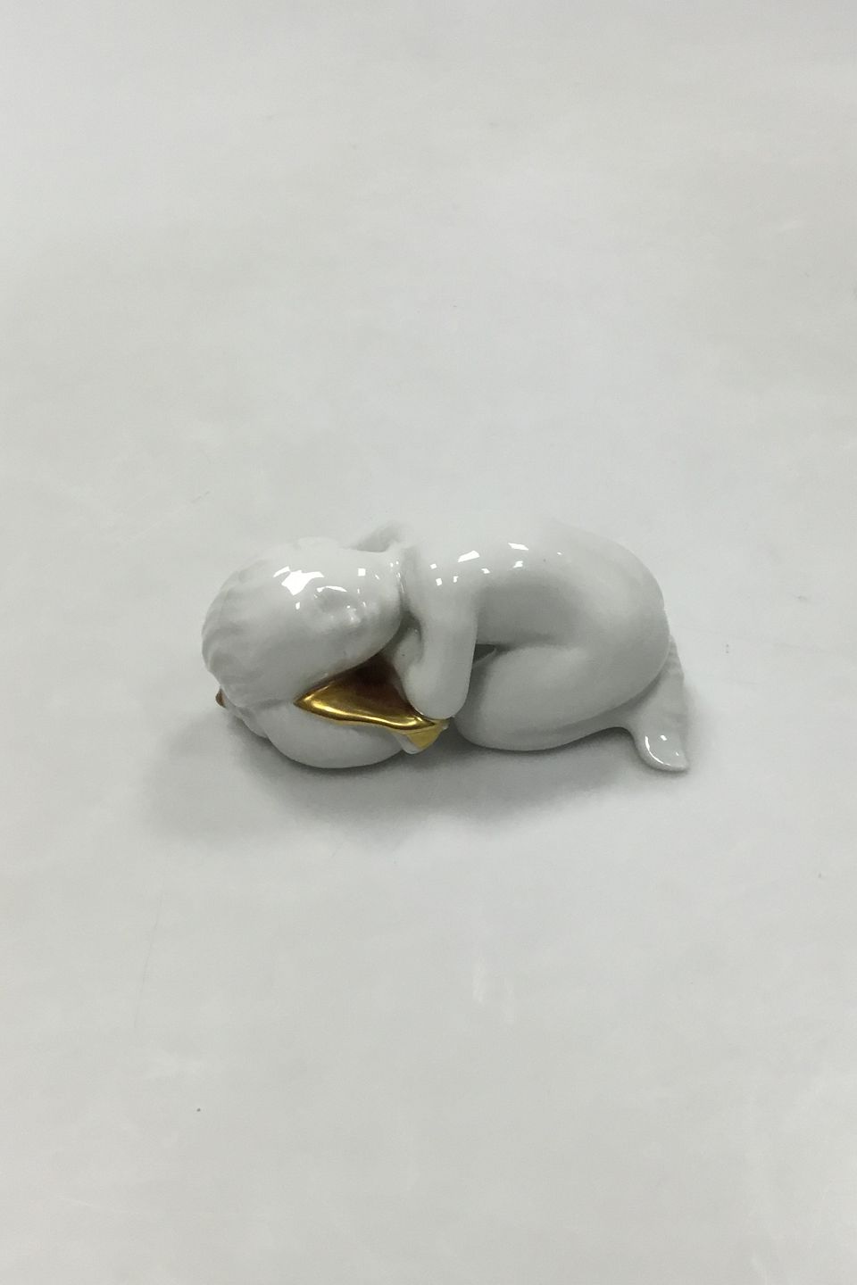 Bing and Grondahl Blanc de Chine Figurine with gold of Child with Seashell No. 2315. Measures 10 cm / 3 15/16 in.