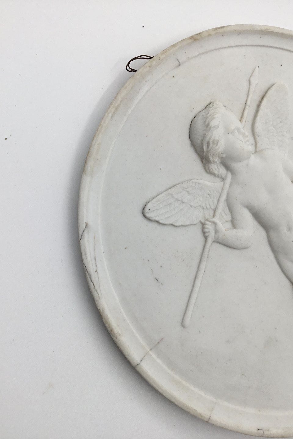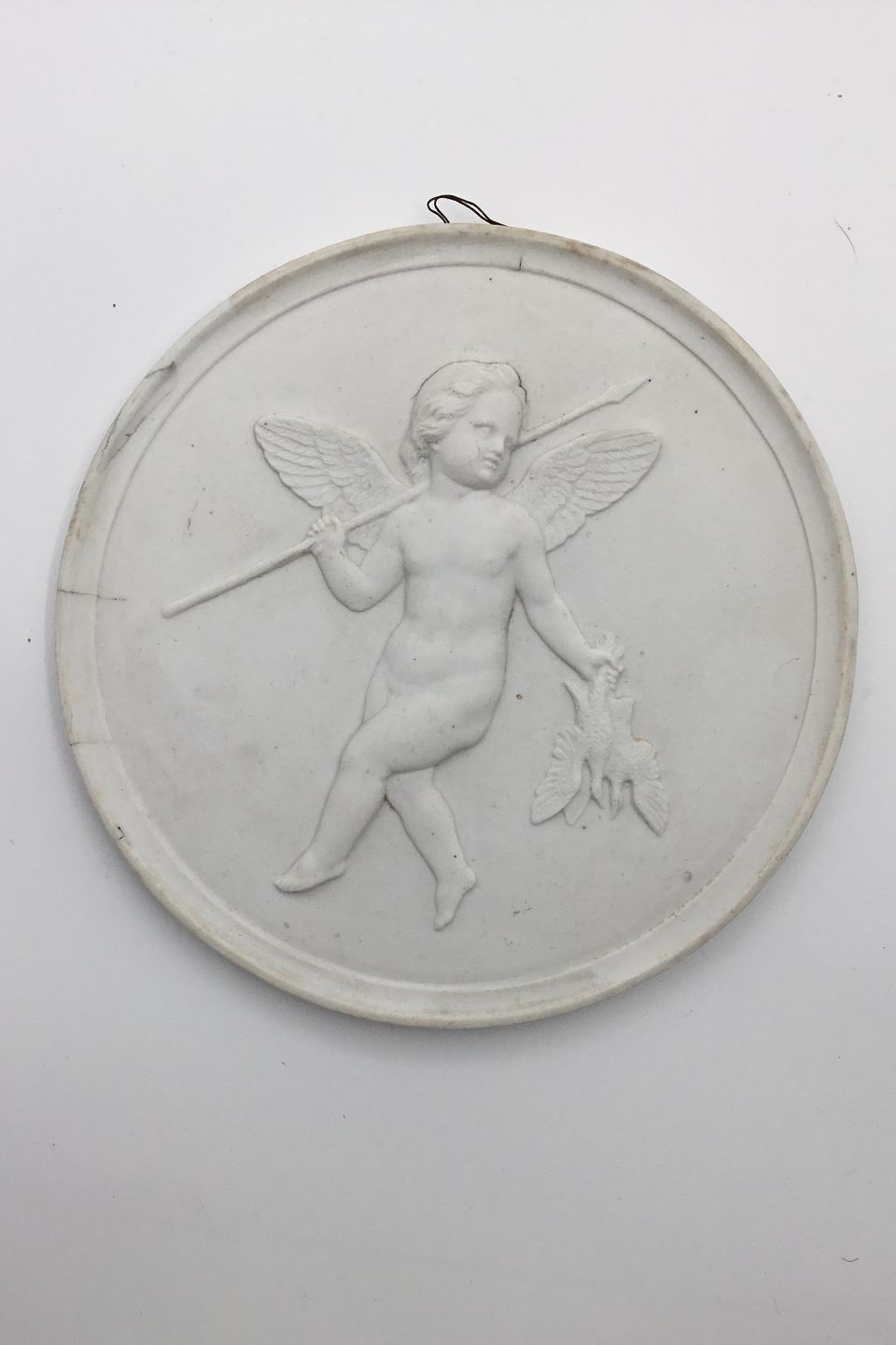 Thorvaldsen Bing & Grondahl bisque plate: "The hunt Genius". Modled by Pietro Galli in Rome 1838 after drawing by Bertel Thorvaldsen. Measures: 14cm (5.51 inches).