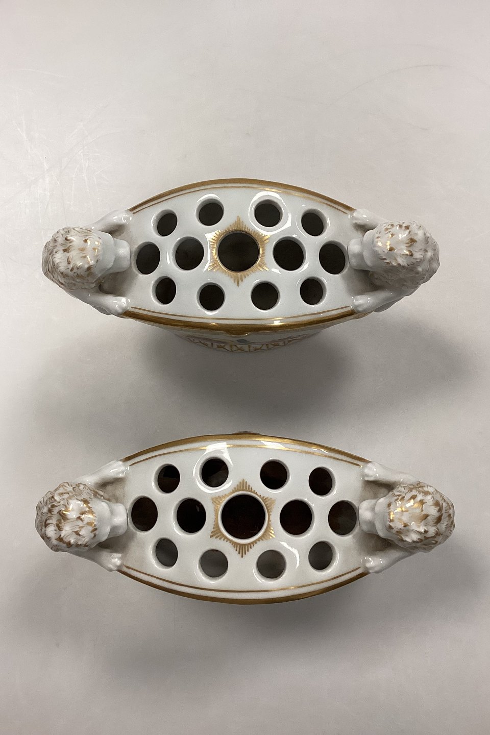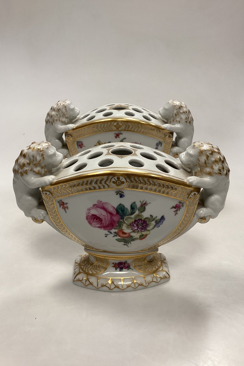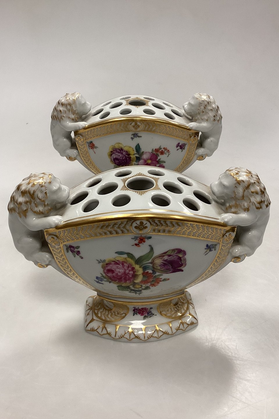 Pair of Royal Copenhagen Full Saxon Flower bouquetièrs / Vases with lionheads No. 1571