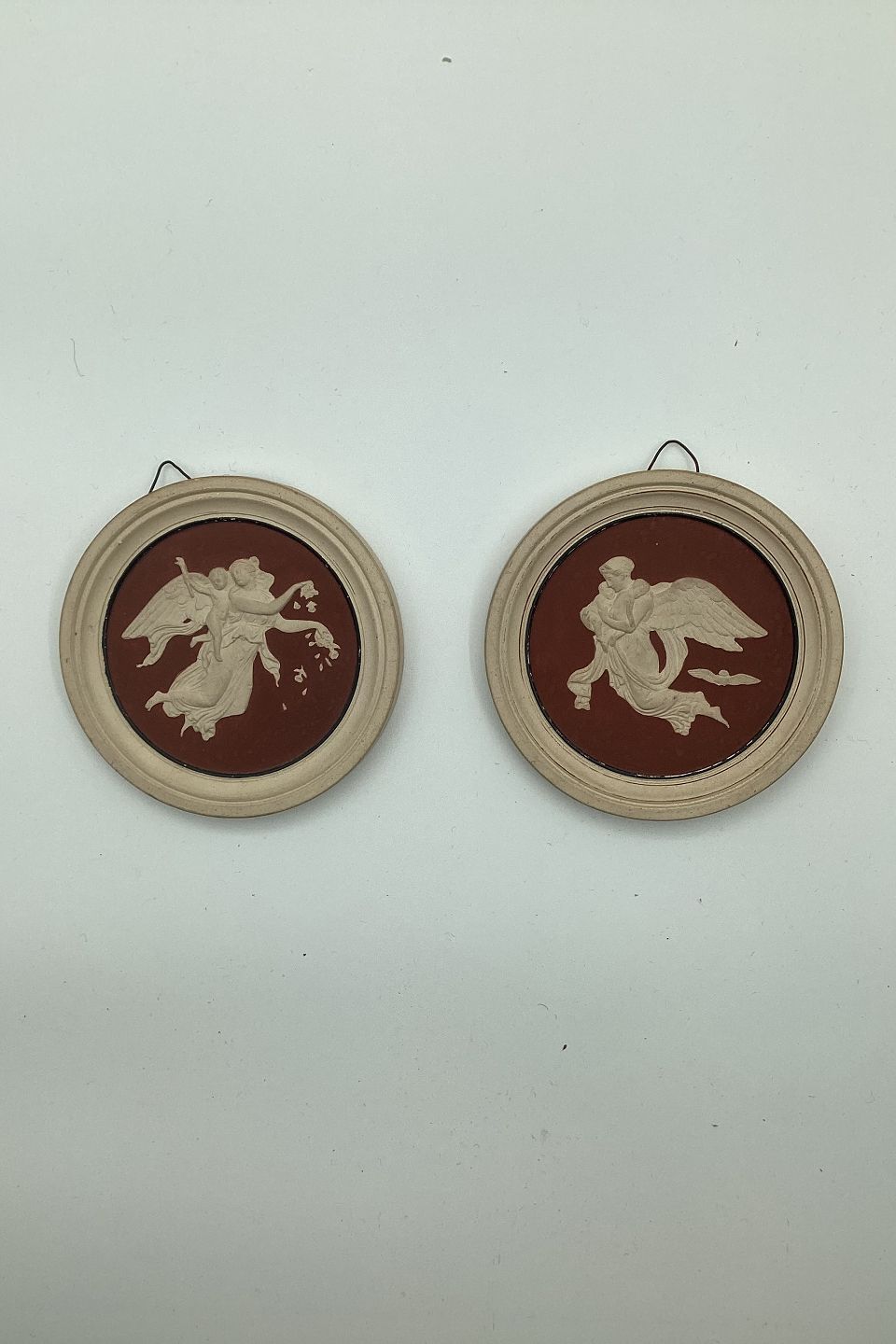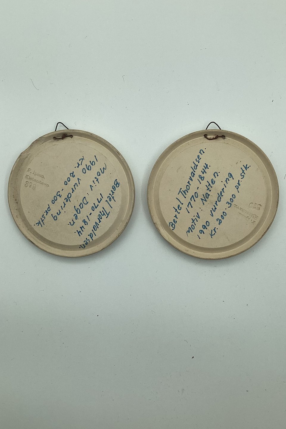 Small Peter Ipsen Terracotta Platter "The Day" and "The Night" by Bertel Thorvaldsen. Embossed motifs on background in burgundy. "Dagen" plate with shards (see photo). Description with ink on the back and assessment in 1990. Measures 9cm (3.54 inches).