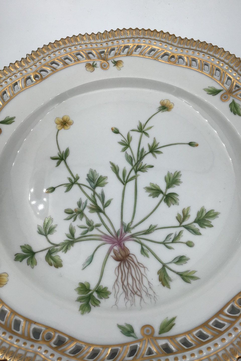 Royal Copenhagen Flora Danica Plate with pierced border No 20/3553. Latin name: Ranunculus Bulbosus L Measures 25.5 cm (10.03 inch)