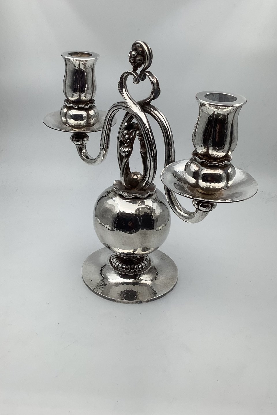 Georg Jensen Sterling Sølv Toarmet Lysestage No 324. Stagen er fra 2002 Granatæble og Drue design kreeret af Georg Jensen i 1919.