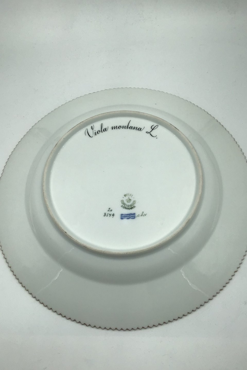 Royal Copenhagen Flora Danica Dinner Plate No. 20/3549 Measures Diam 26 cm. (10.23 inch) 1. Quality. Latin Name: Viola montana L.