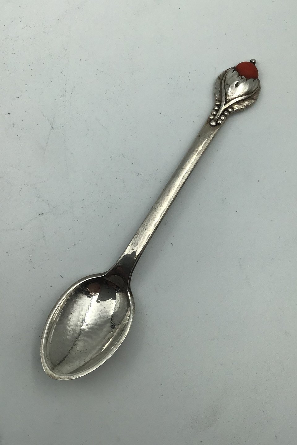 Evald Nielsen Sølv No. 3 Kaffeske med Rød Sten