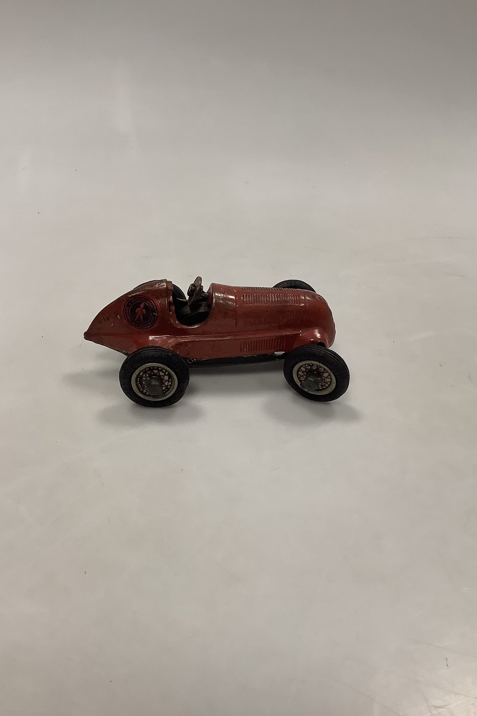 Schuco Mercedes racerbil fra 1930erne. Uden nøgle. Venstre forhjulsophæng med mindre defekt. Mål: 5,5 cm høj (2.16 inch) og 13,5 cm lang (4.92 inch)