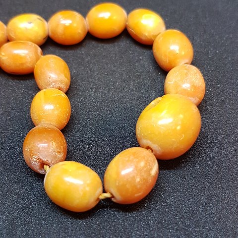 Antique Butterscotch baltic sea amber necklace with olive shaped beads. Length 72 cm. Weight 35.5 grams