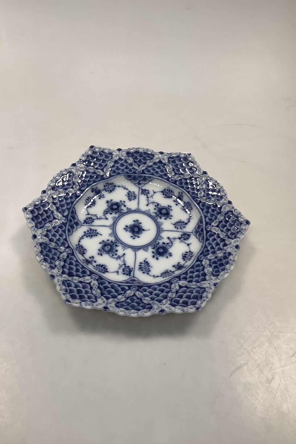 Royal Copenhagen Blue Fluted Full Lace Plate No 1144. 17.5 cm dia (6 57/64"). Has a chip on the edge.