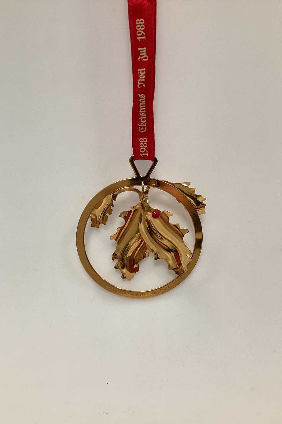 Georg Jensen Christmas Mobile 1988 - Holly. Designed by Lene Munthe. Missing a berry (a pearl) at the top.
