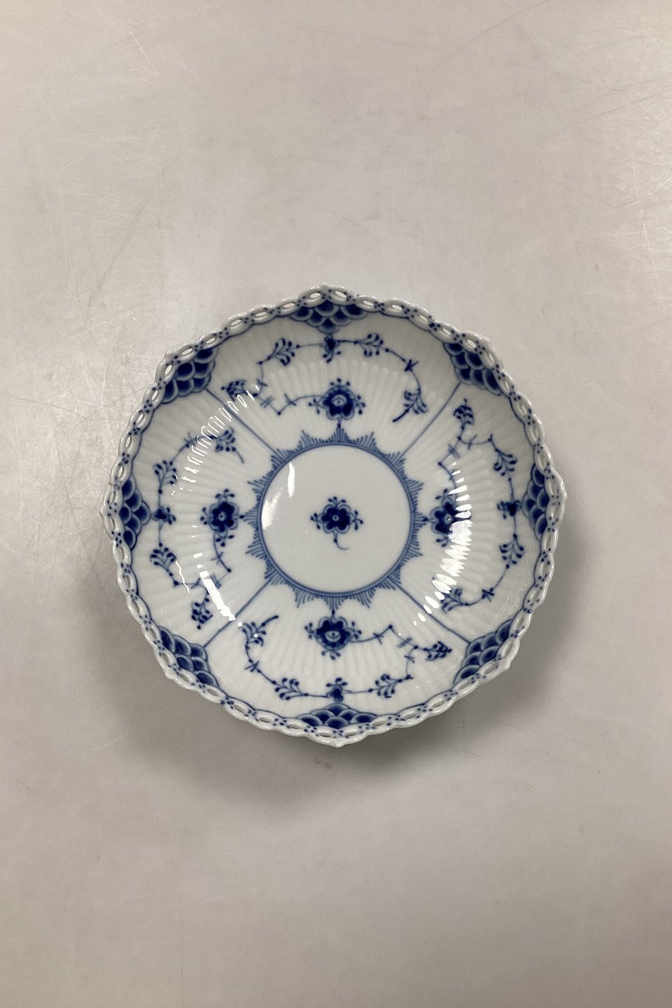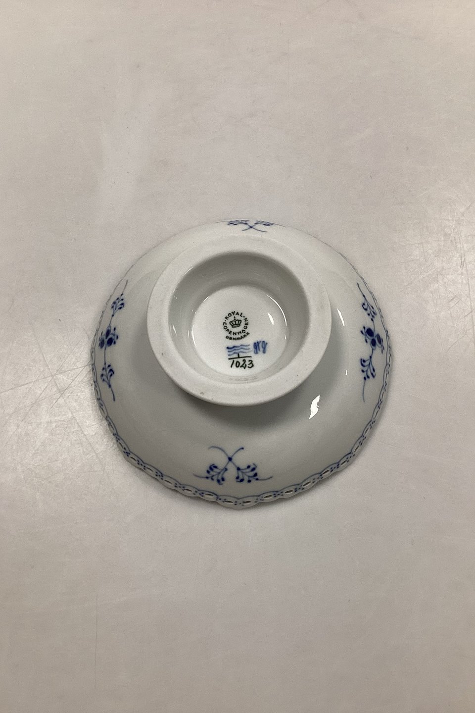 Royal Copenhagen Blue fluted Full Lace Bowl on Foot No 1023. Measures 17.5 cm / 6 57/64 in. 1st Quality. Has a clued tip