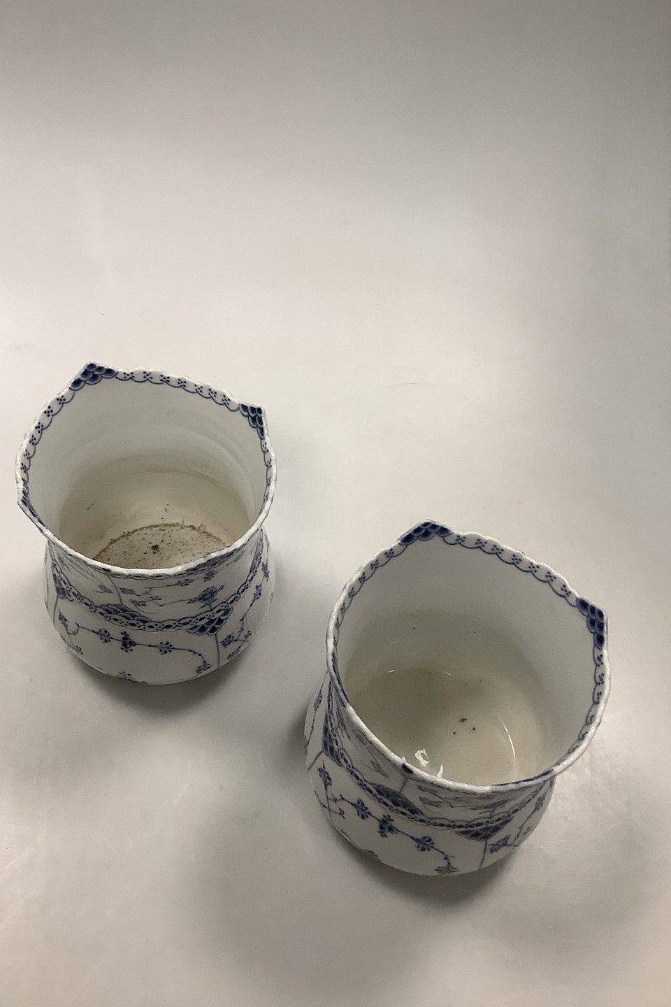 Pair of Royal Copenhagen Blue Fluted Half Lace Selleri Pots / Vases No 627