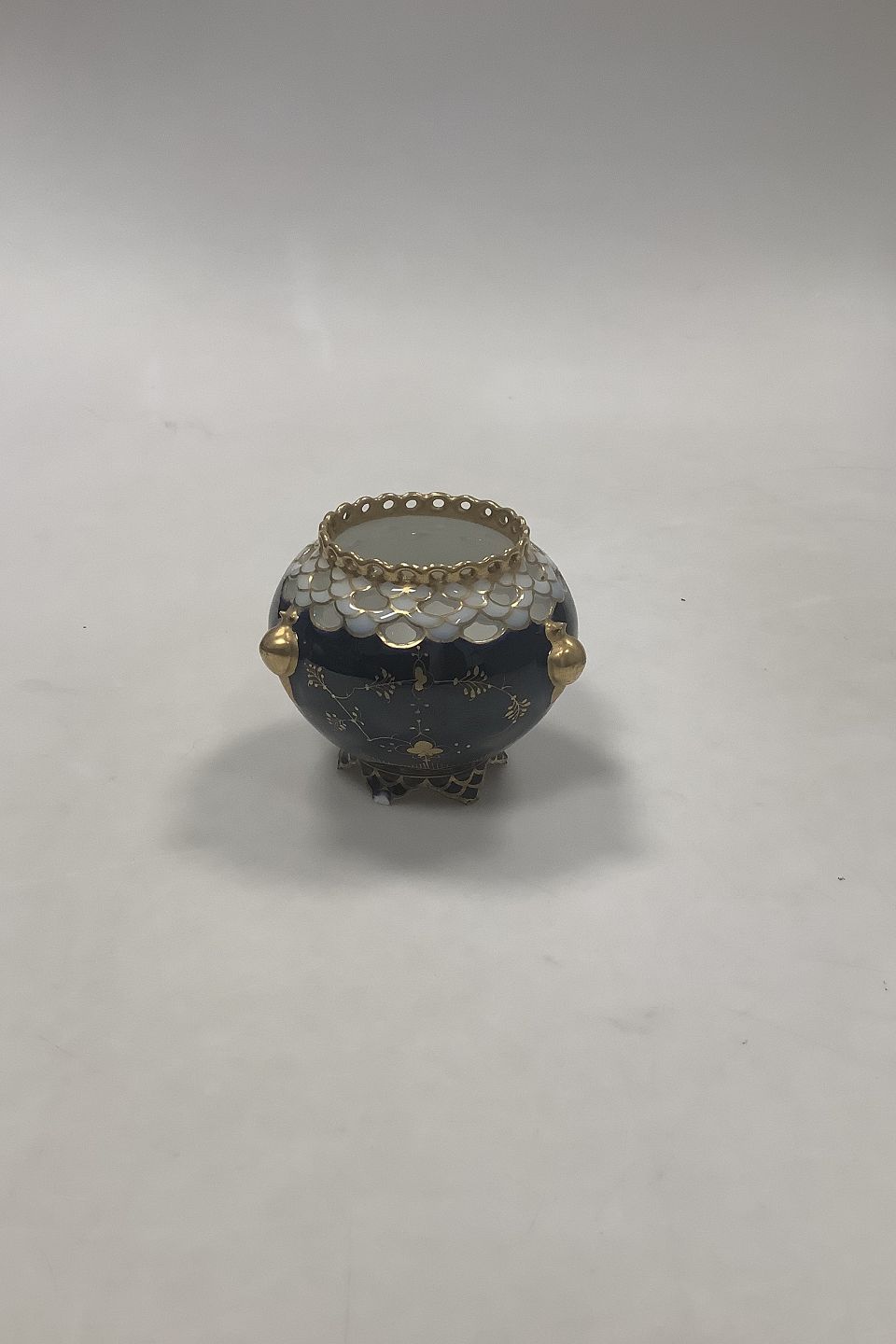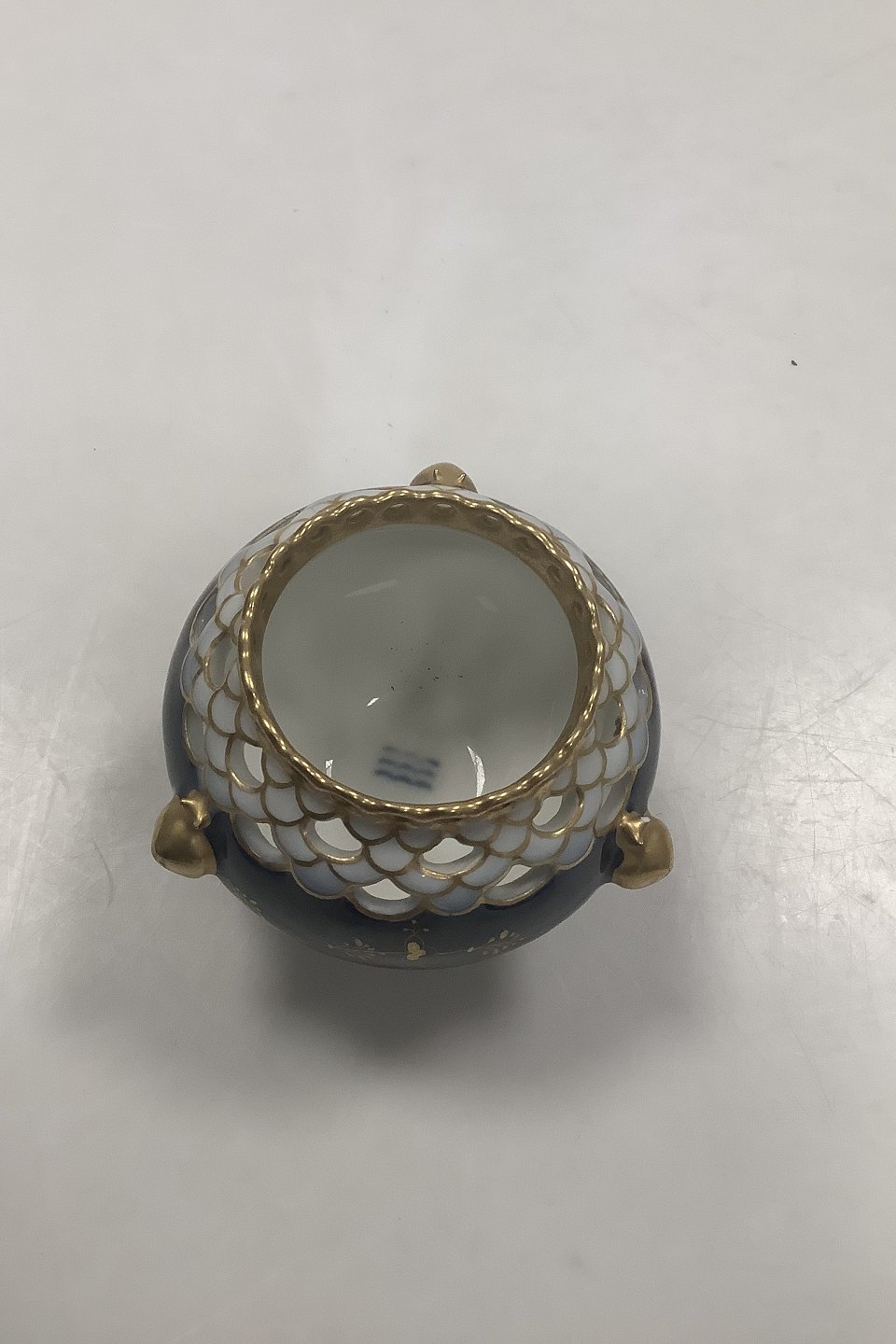 Royal Copenhagen Blue Fluted Full Lace Little Vase No 1043 in Rare Dark Blue and Gold.