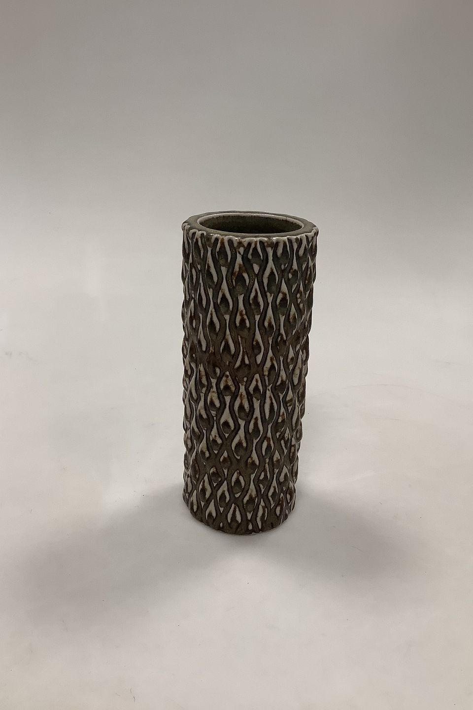 Royal Copenhagen Axel Salto Stentøjsvase No 20564 Cylindrisk vase modelleret i spirende stil, dekoreret med Solfatara glasur. H 17 cm Diam 7 cm