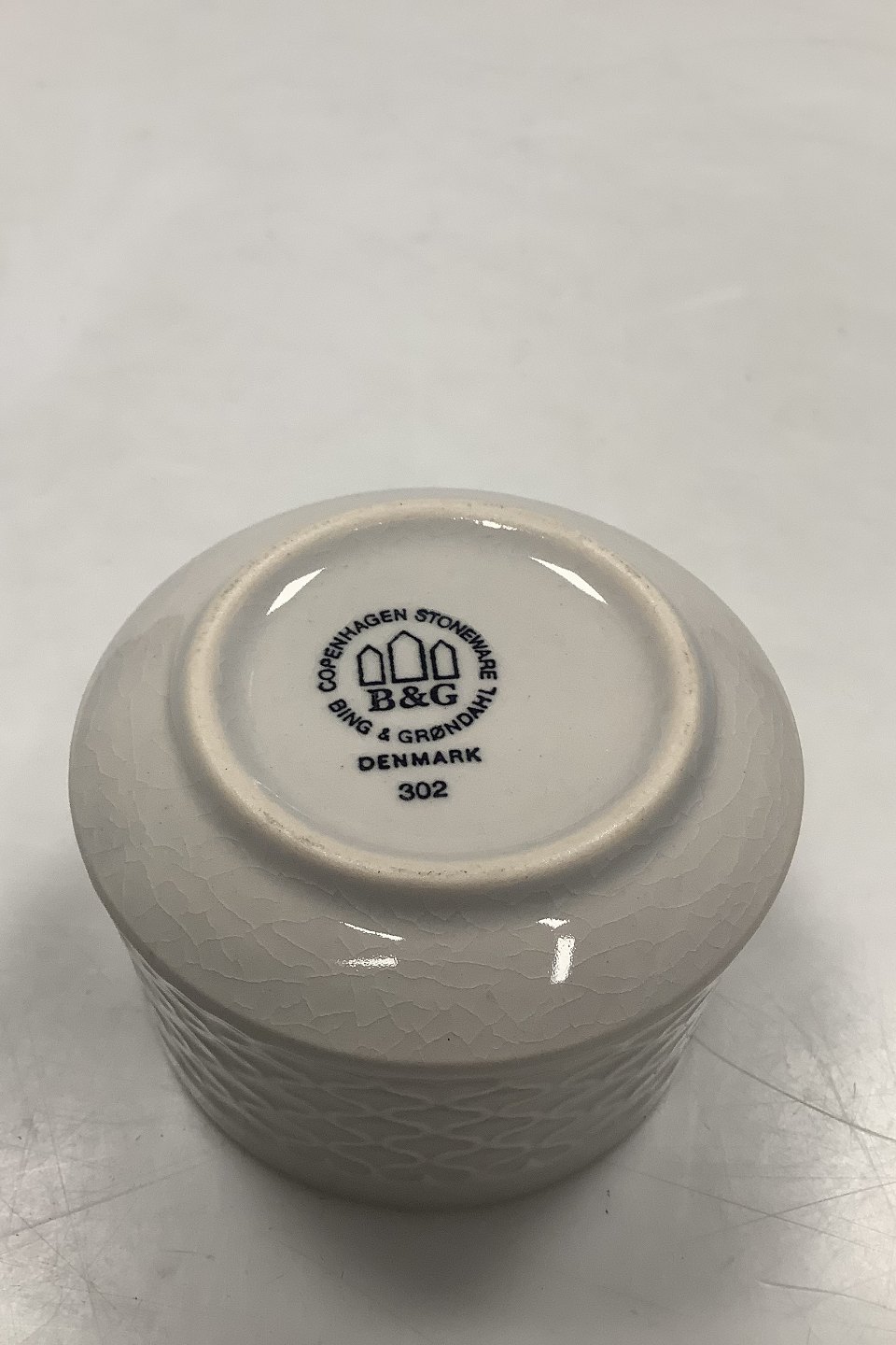 Bing og Grøndahl/Kronjyden Stentøj Hvid Cordial Sukkerskål No 302. Måler 6 x 8 cm ( 2 23/64 x 3 5/32 in).