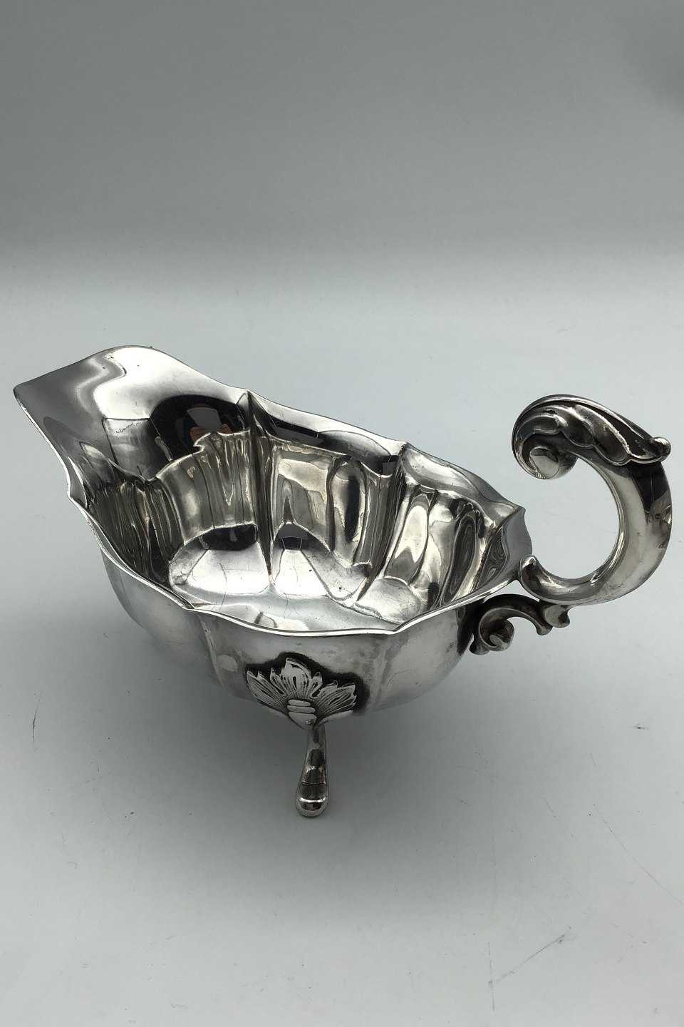 Cohr (Christophersen) Sølv Sauceskål Måler 16.5 cm x 9 cm (6.49 inch x 3.54 inch) H 10.5 cm (4.13 inch) Vægt 200 gr 7.05 oz (NB Gravering)