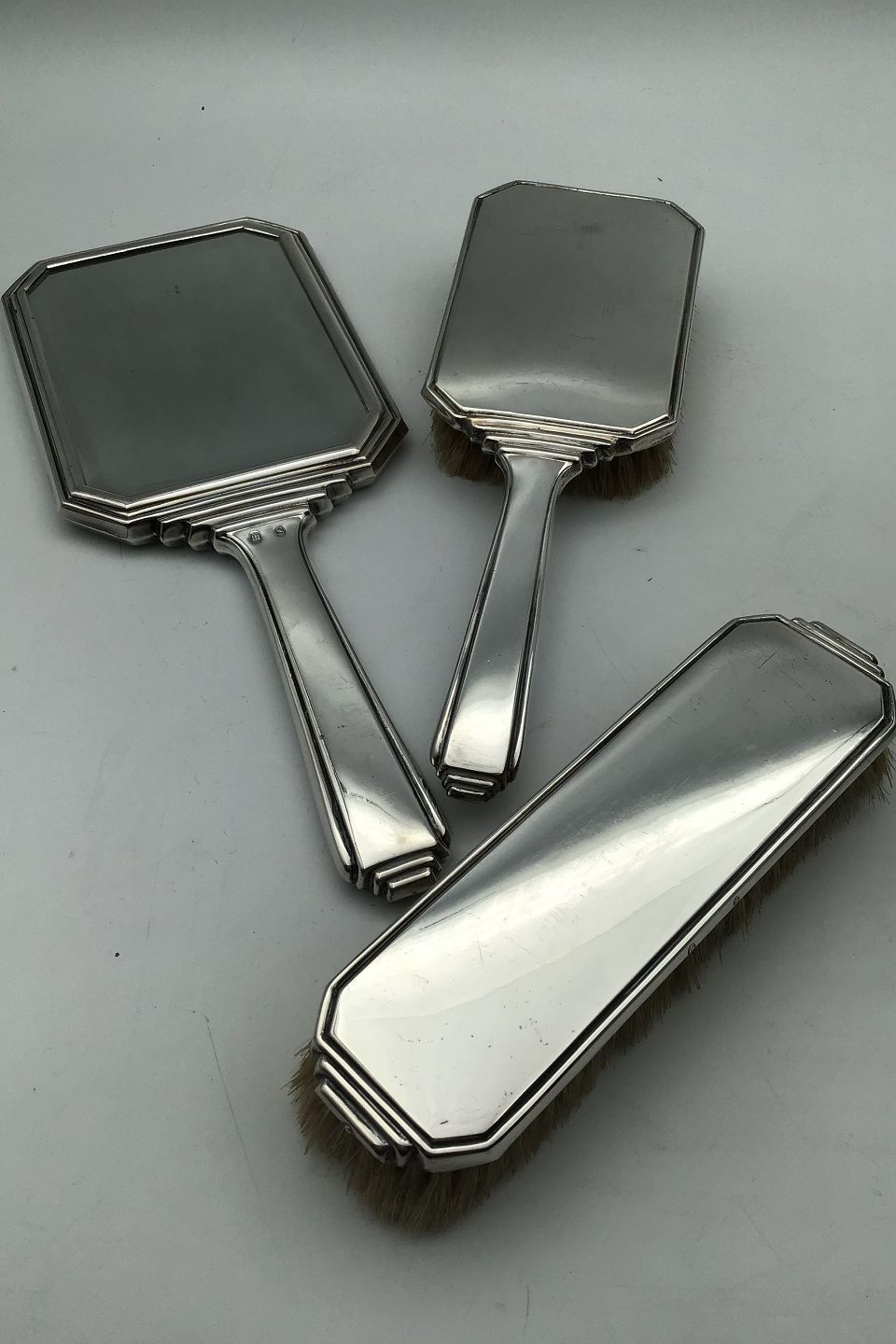 Dansk Sølv Toilet garniture Måler hhv Spejl 27.5 cm(10.82 inch)Hårbørste 23 cm(9.05 inch) Klædebørste 17.5 cm(6.88 inch)