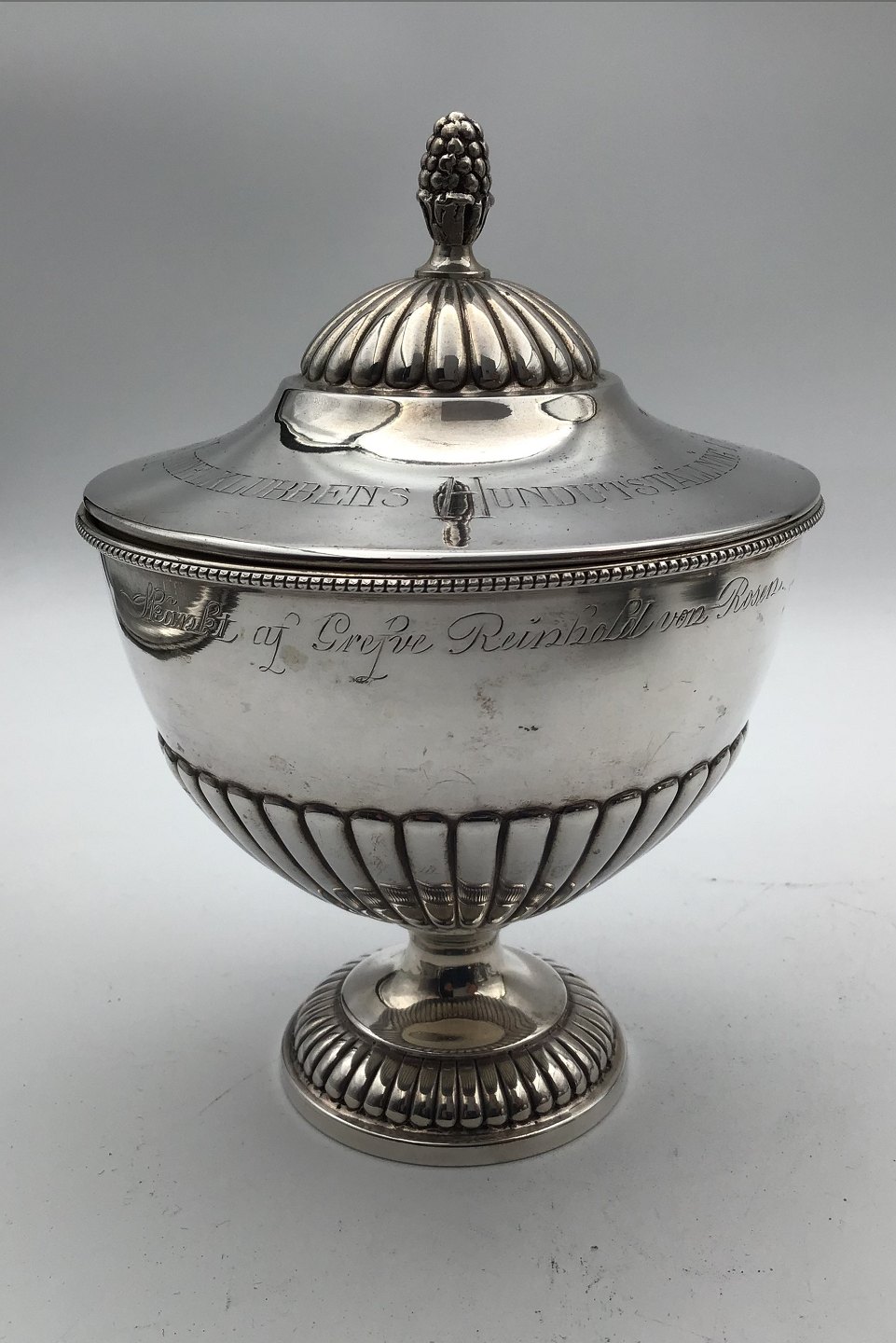 Svensk Sølv Lågopsats (Præmie 1910) Måler H 15 cm (5.90 inch) Diam 10.5 cm (4.13 inch) Vægt 166.4 gr (5.87 oz) (Graveringer)