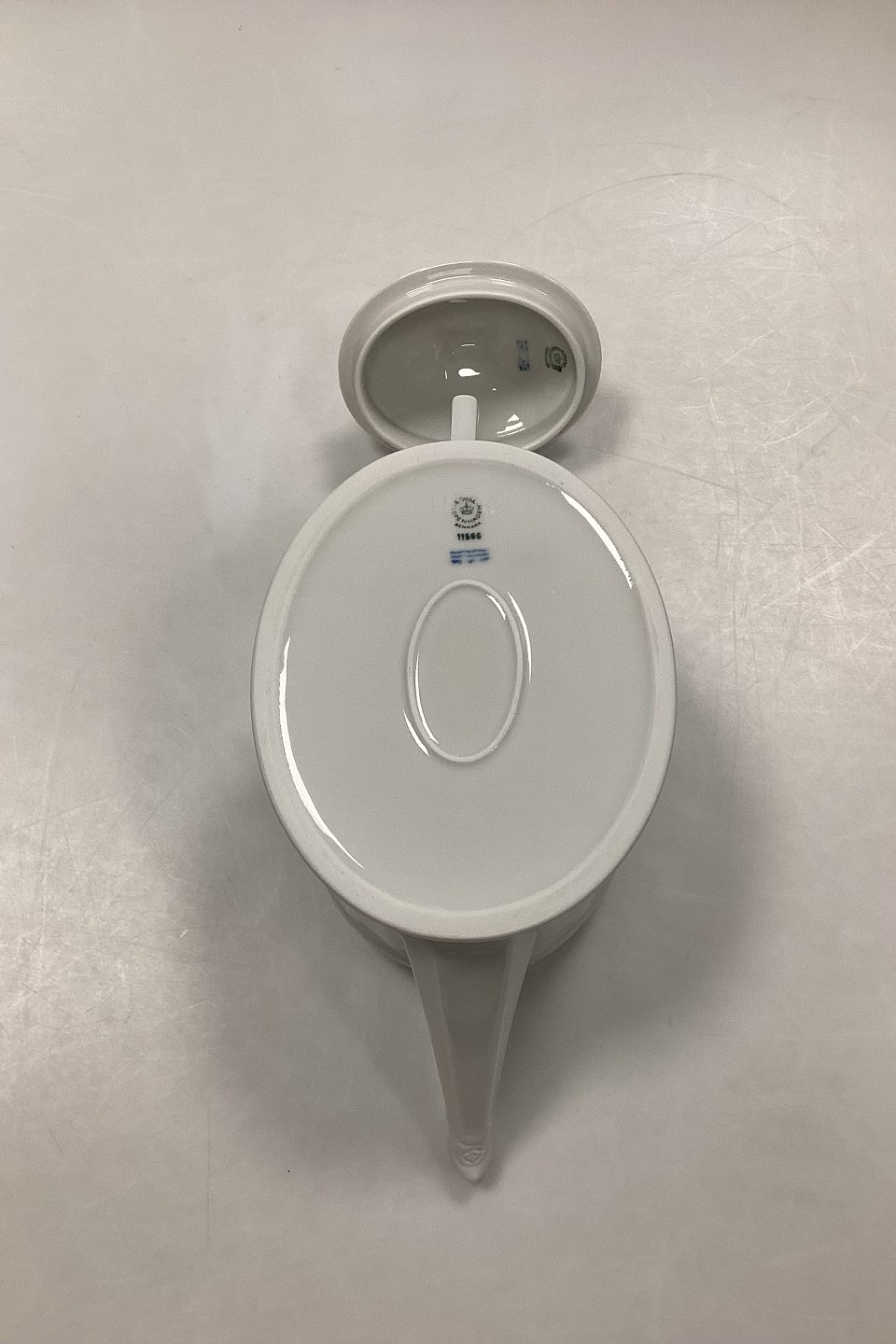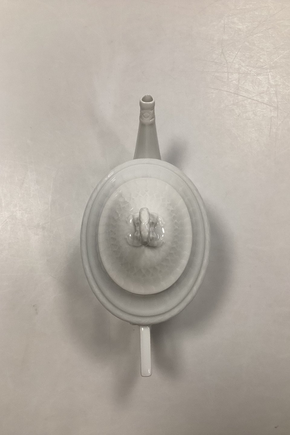Royal Copenhagen Hvid Vifte Thekande No. 11566. Måler 17 cm x 27 cm / 6.69 in. x 10.62 in. Indhold: 90 cl. I perfekt stand.
