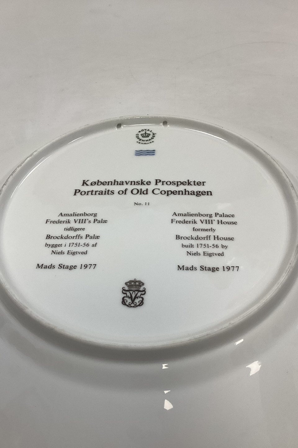 Royal Copenhagen Platte Københavnske Prospekter Amalienborg Slot No 11. Mads Stage 1977.